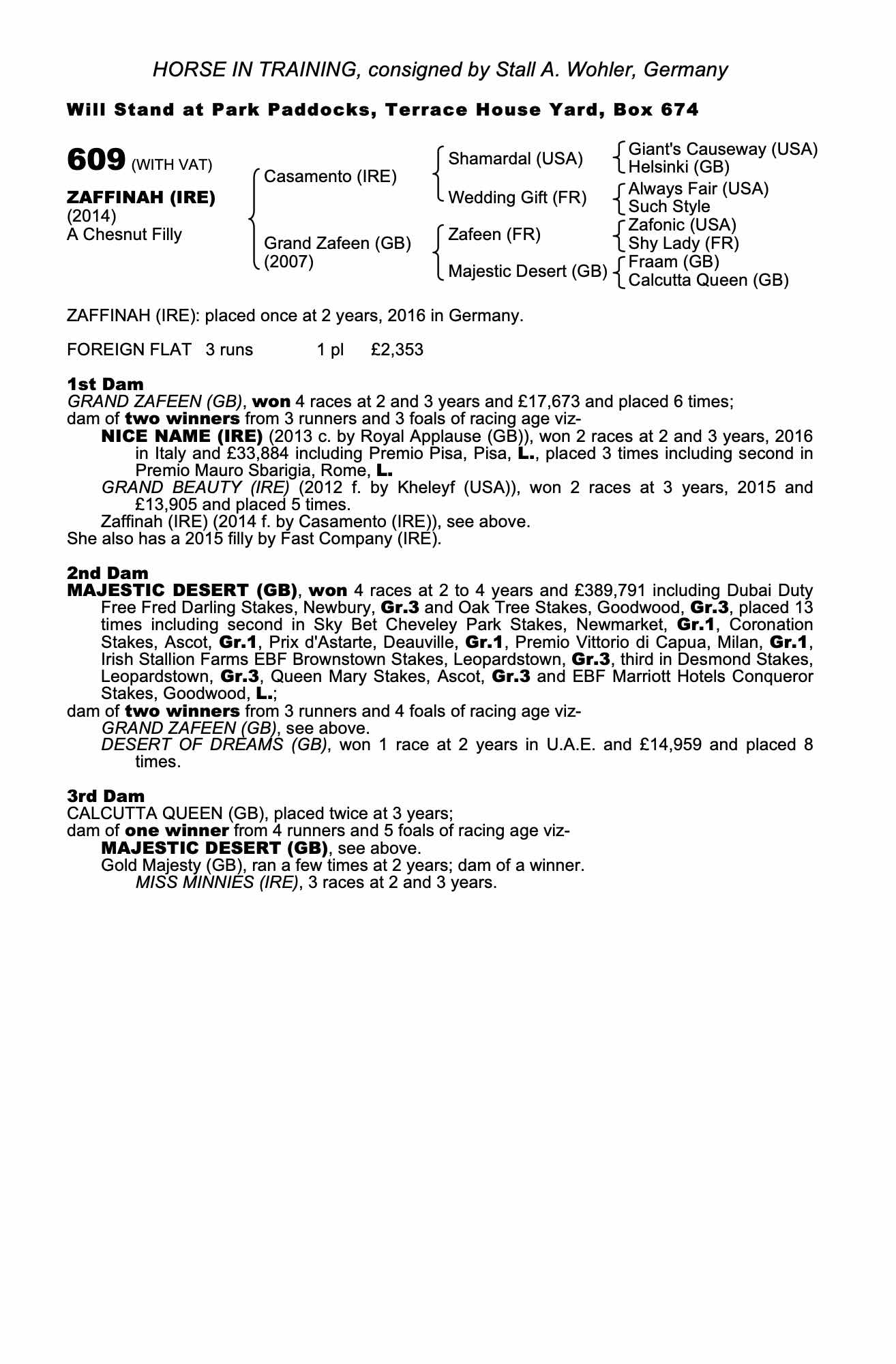 Consignor: Stall A. Wohler, Germany