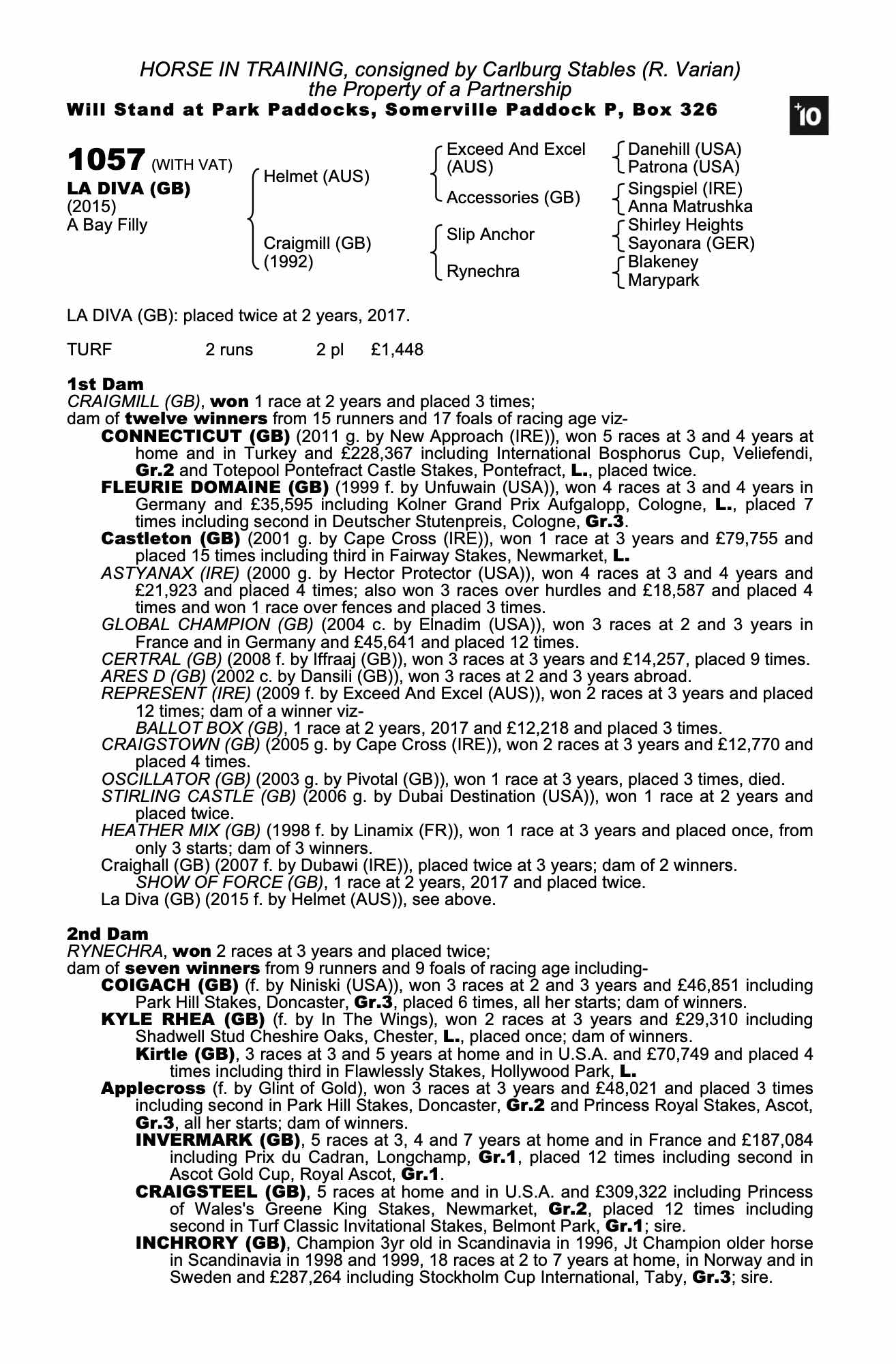 Consignor: Carlburg Stables (R. Varian)