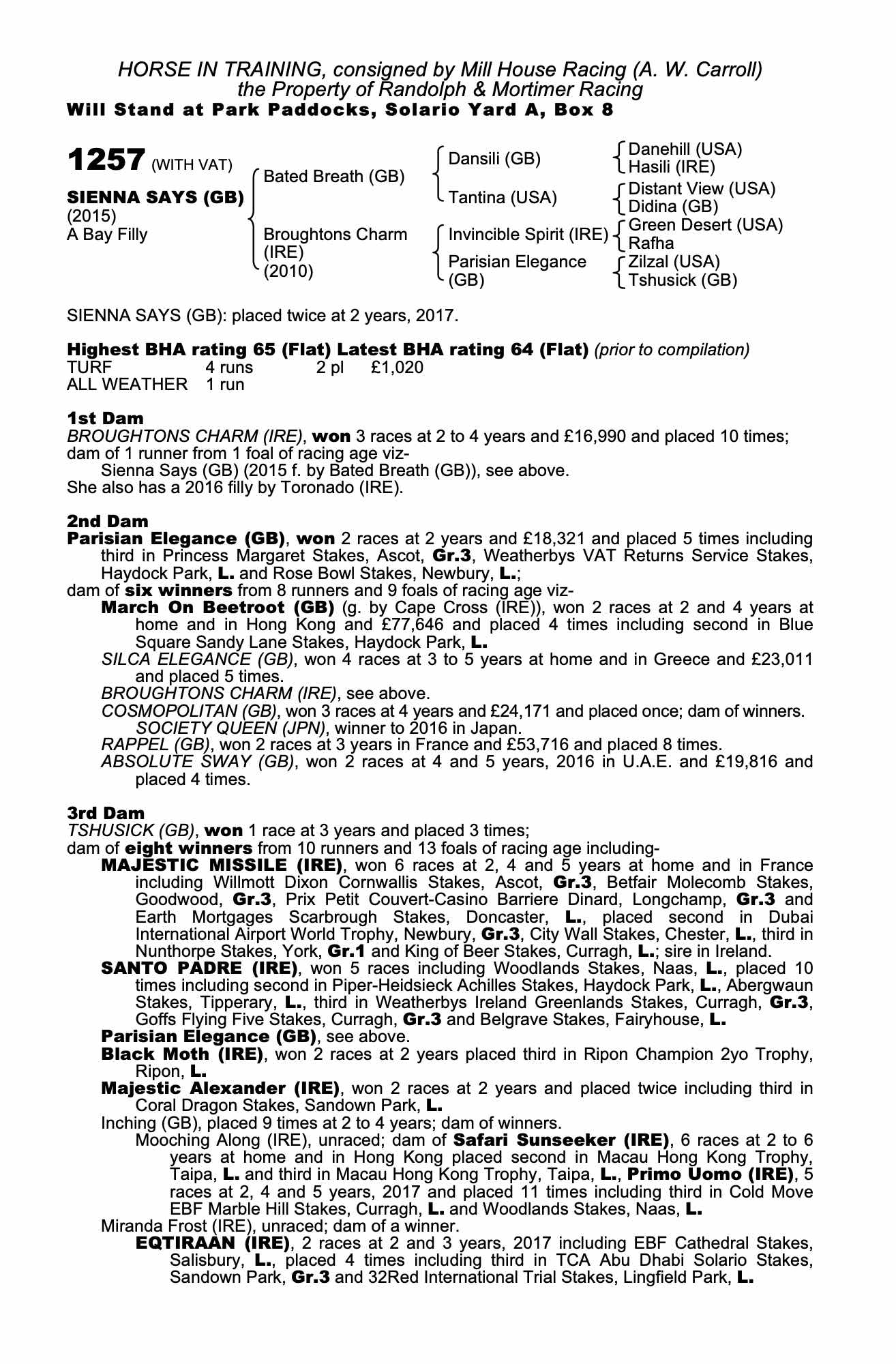 Guineas Horses in Training Sale 2019 lot 44 Zorro's Girl (GB) (F. by Toronado (IRE)), The Castlebridge Consignment=>Oliver St Lawrence 5,000 gns