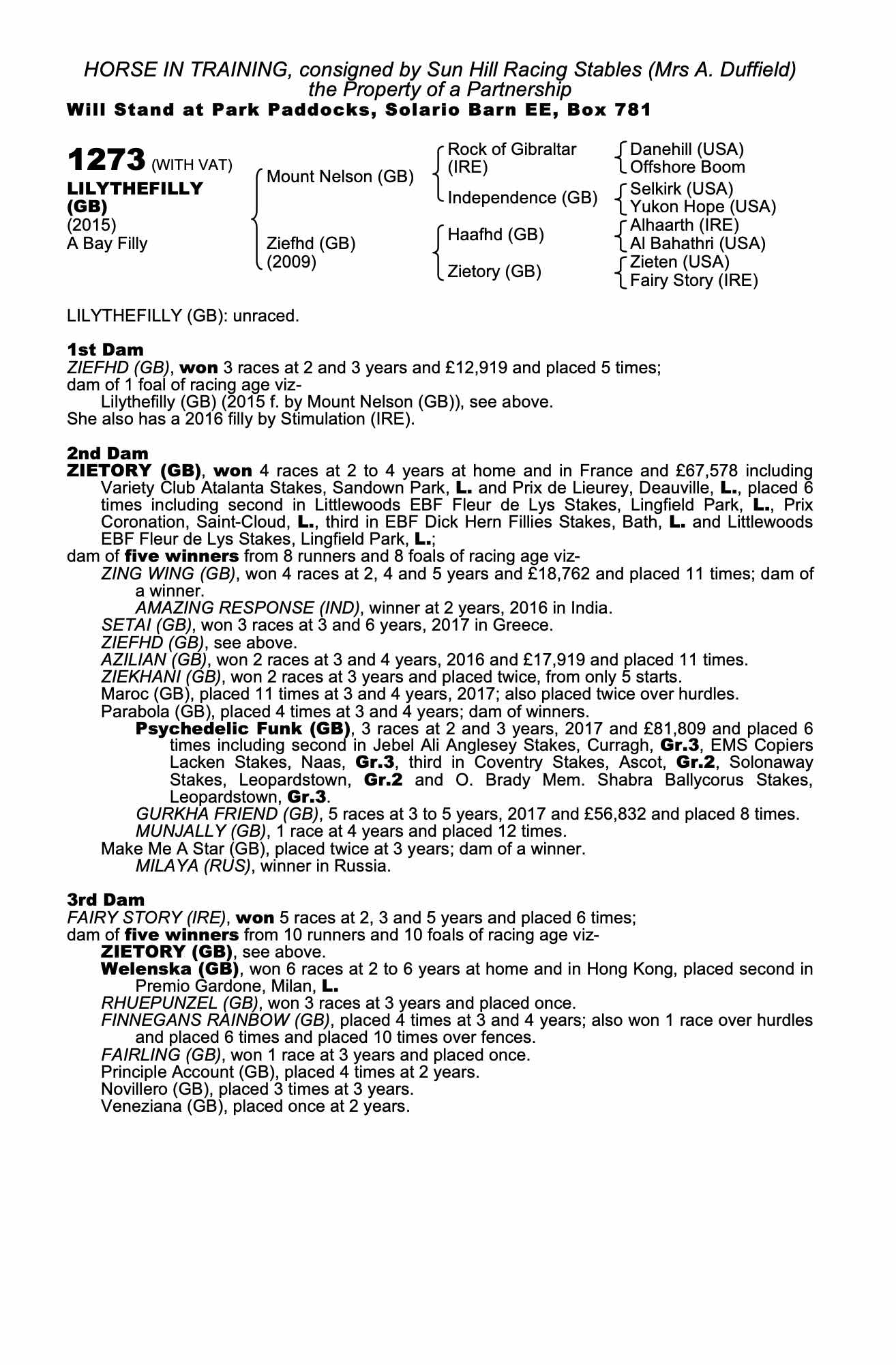 Consignor: Sun Hill Racing Stables (Mrs A. Duffield)