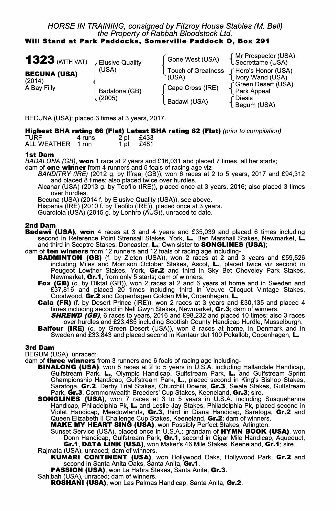 Consignor: Fitzroy House Stables (M. Bell)