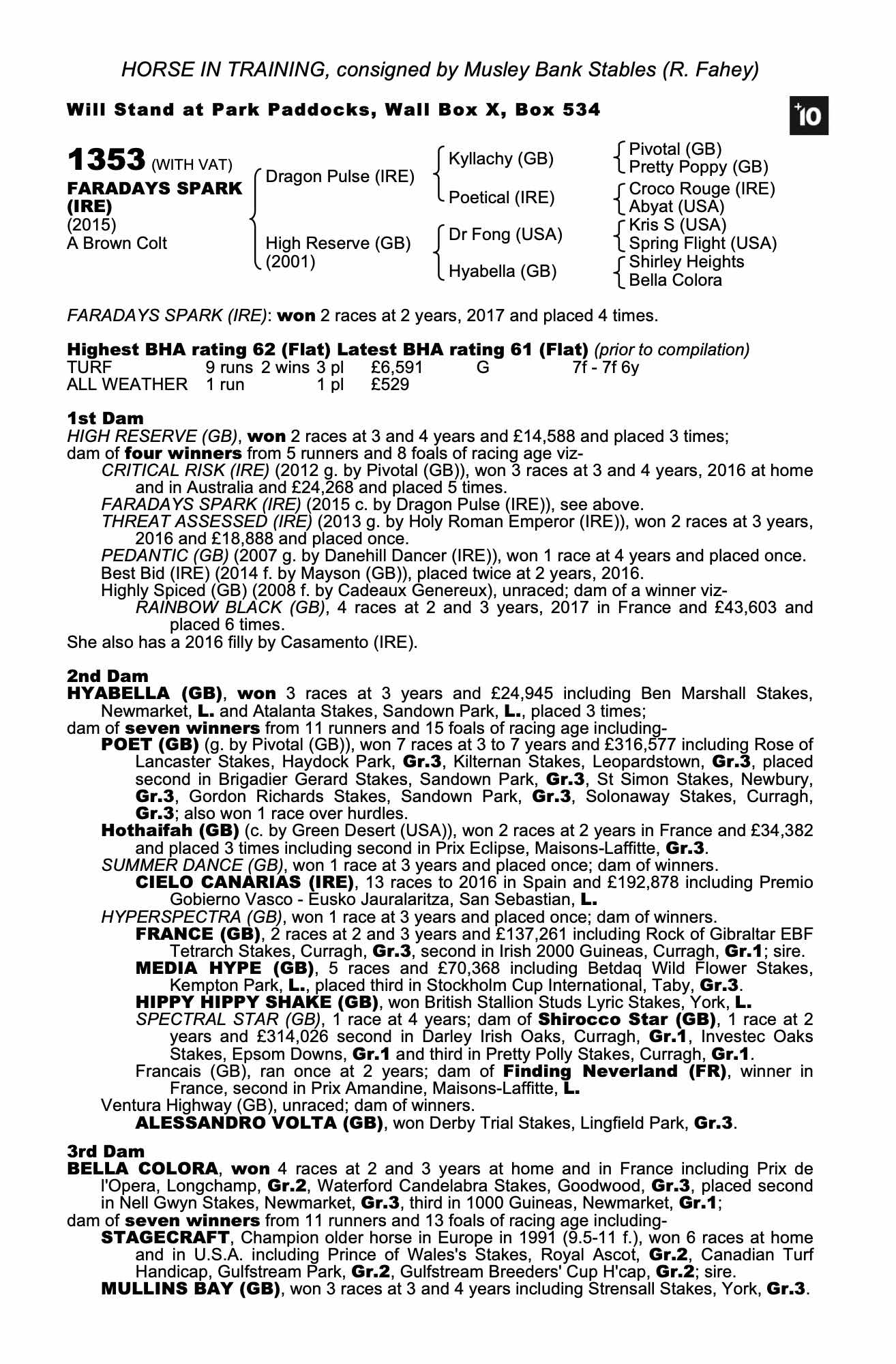 October Yearling Sale, Book 2 2010 lot 1147 F. by Haafhd (GB) 2009, Meon Valley Stud=>Vendor 16,000 gns