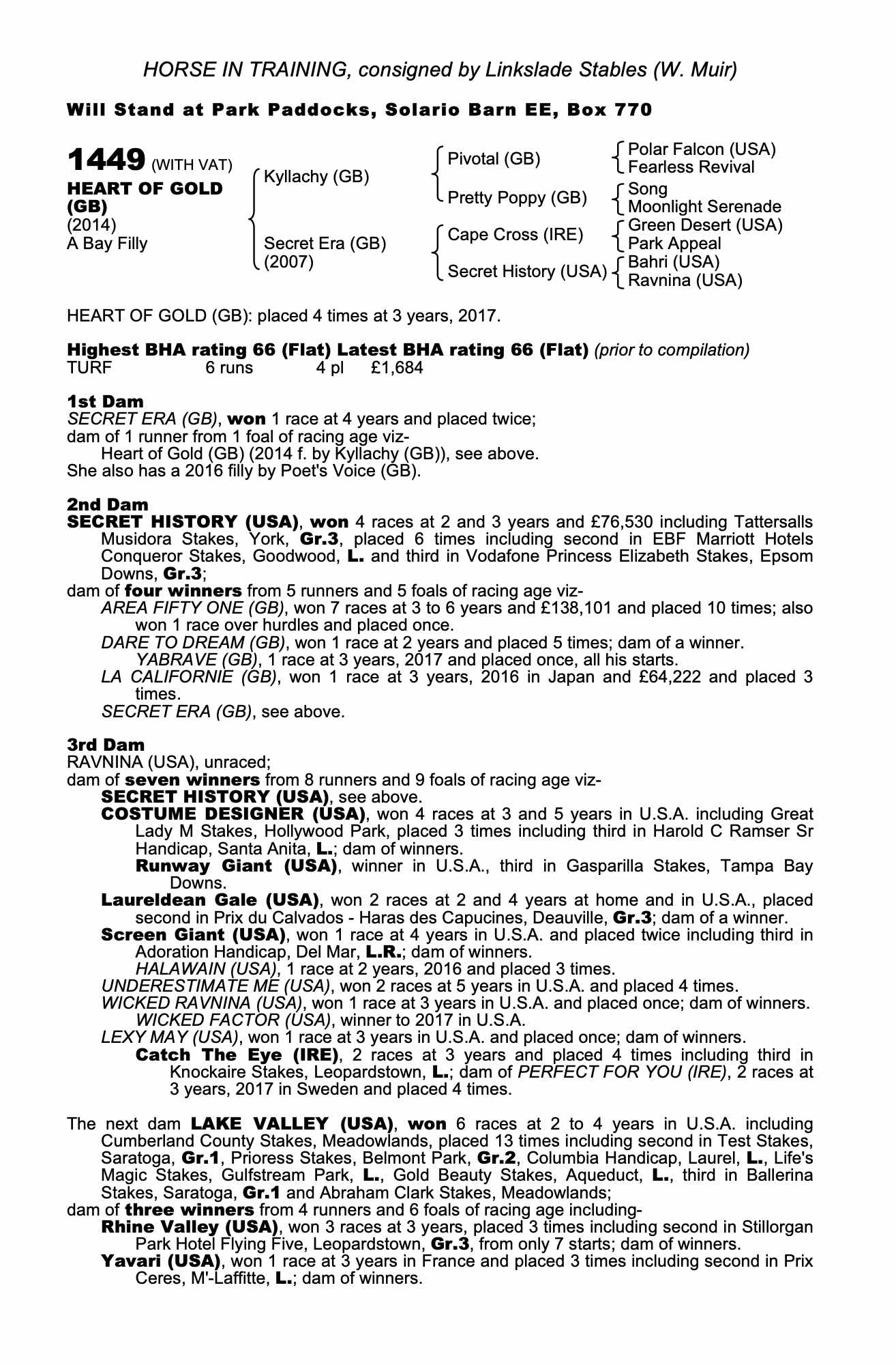 Ascot August Sale 2019 lot 80 Poetic Era (GB) (F. by Poet's Voice (GB)), Godolphin=>Tower Farm Stud £6,000
