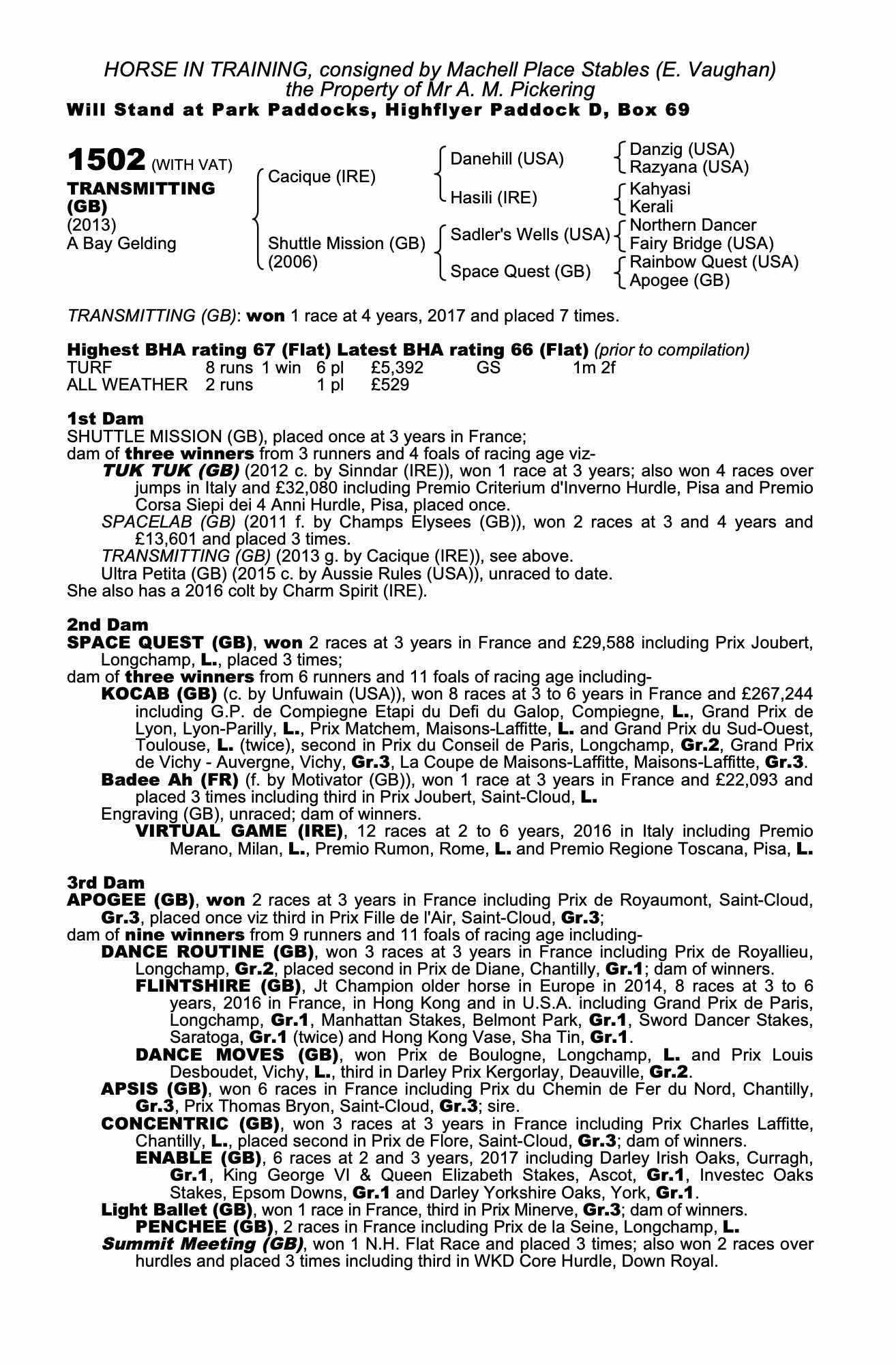 Autumn Horses in Training Sale lot 1086, Juddmonte Farms=>M & C Dixon 15,000 gns
