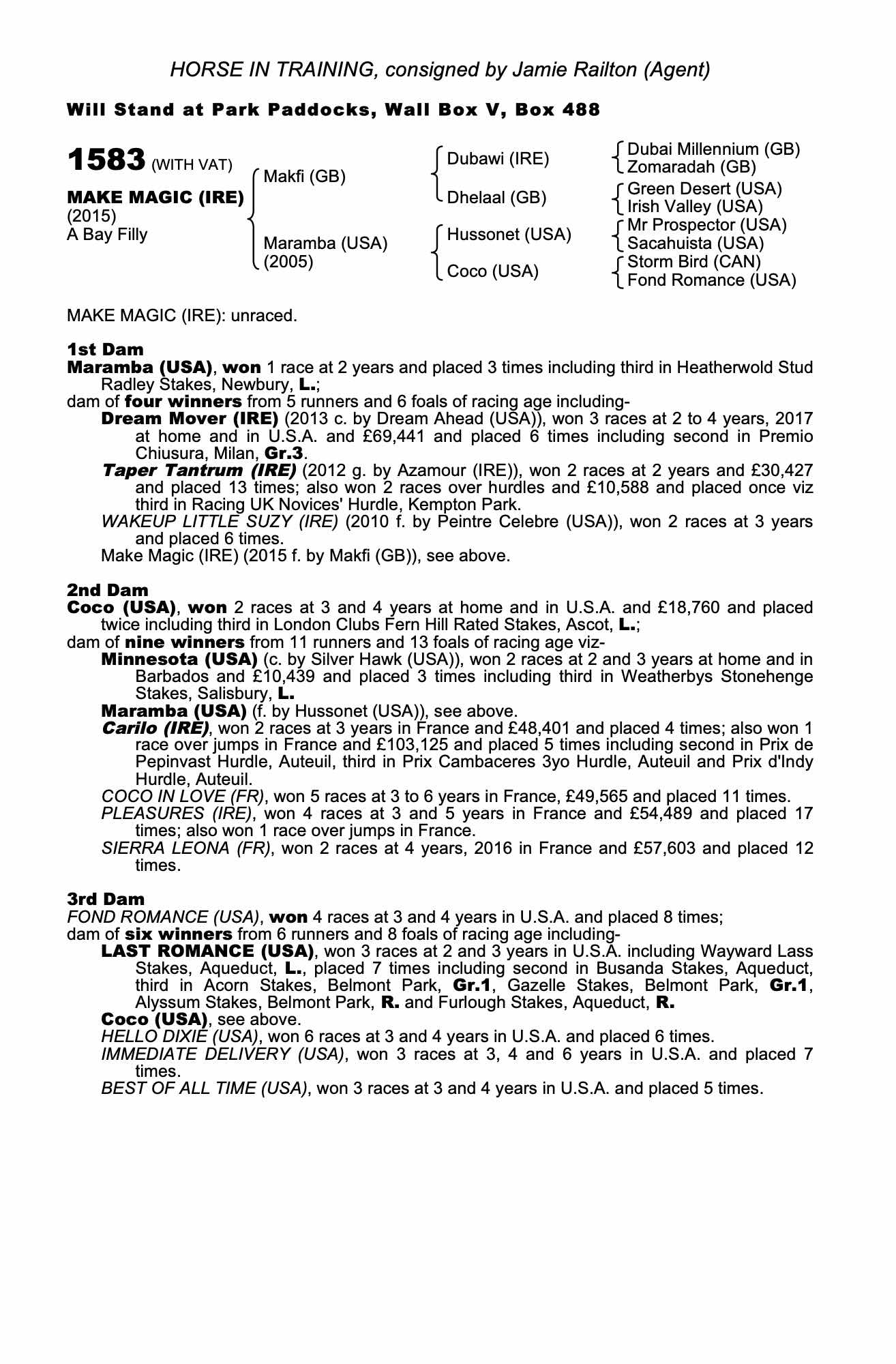 Consignor: Jamie Railton (Agent)