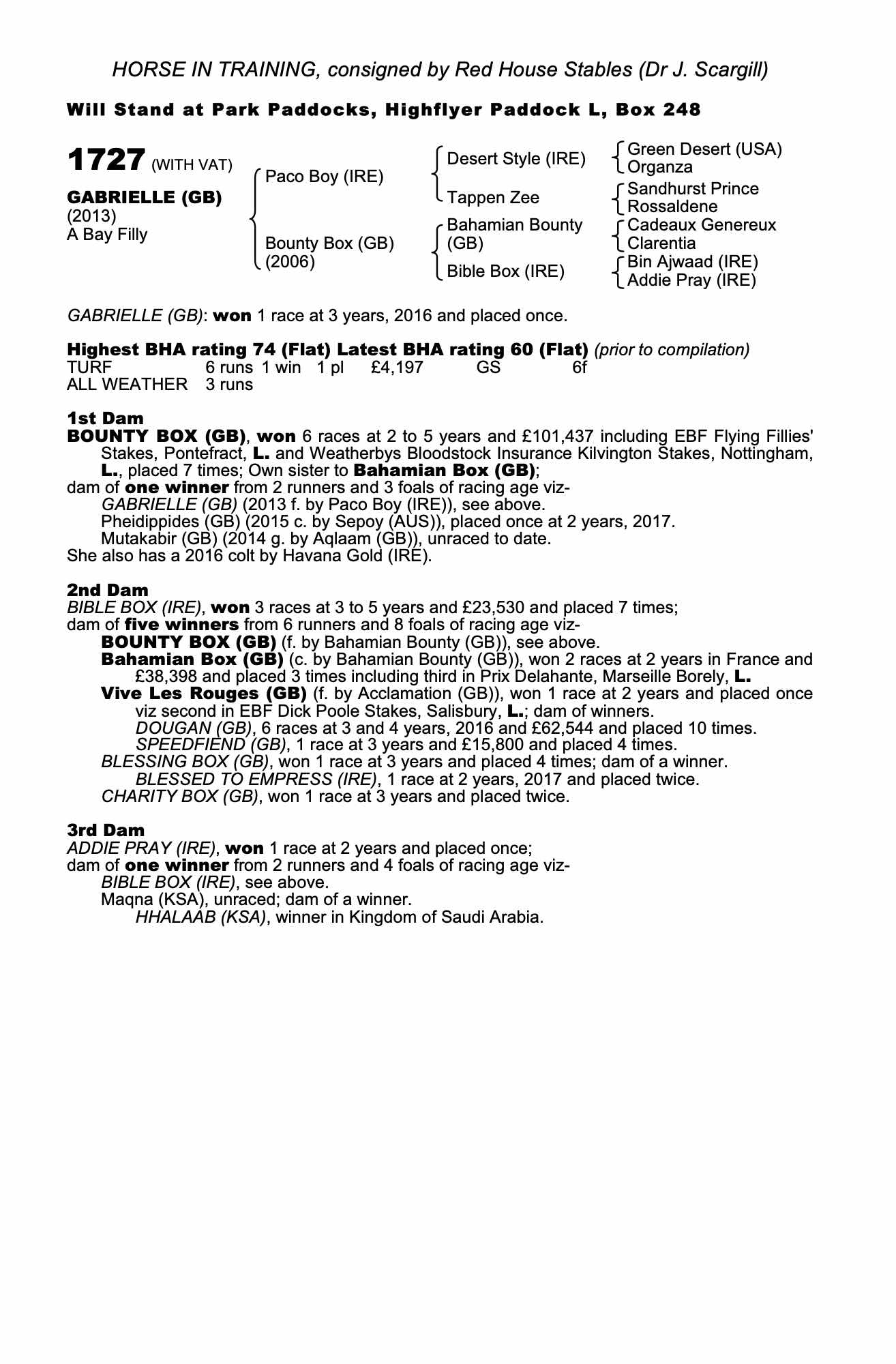 Consignor: Red House Stables (Dr J. Scargill)