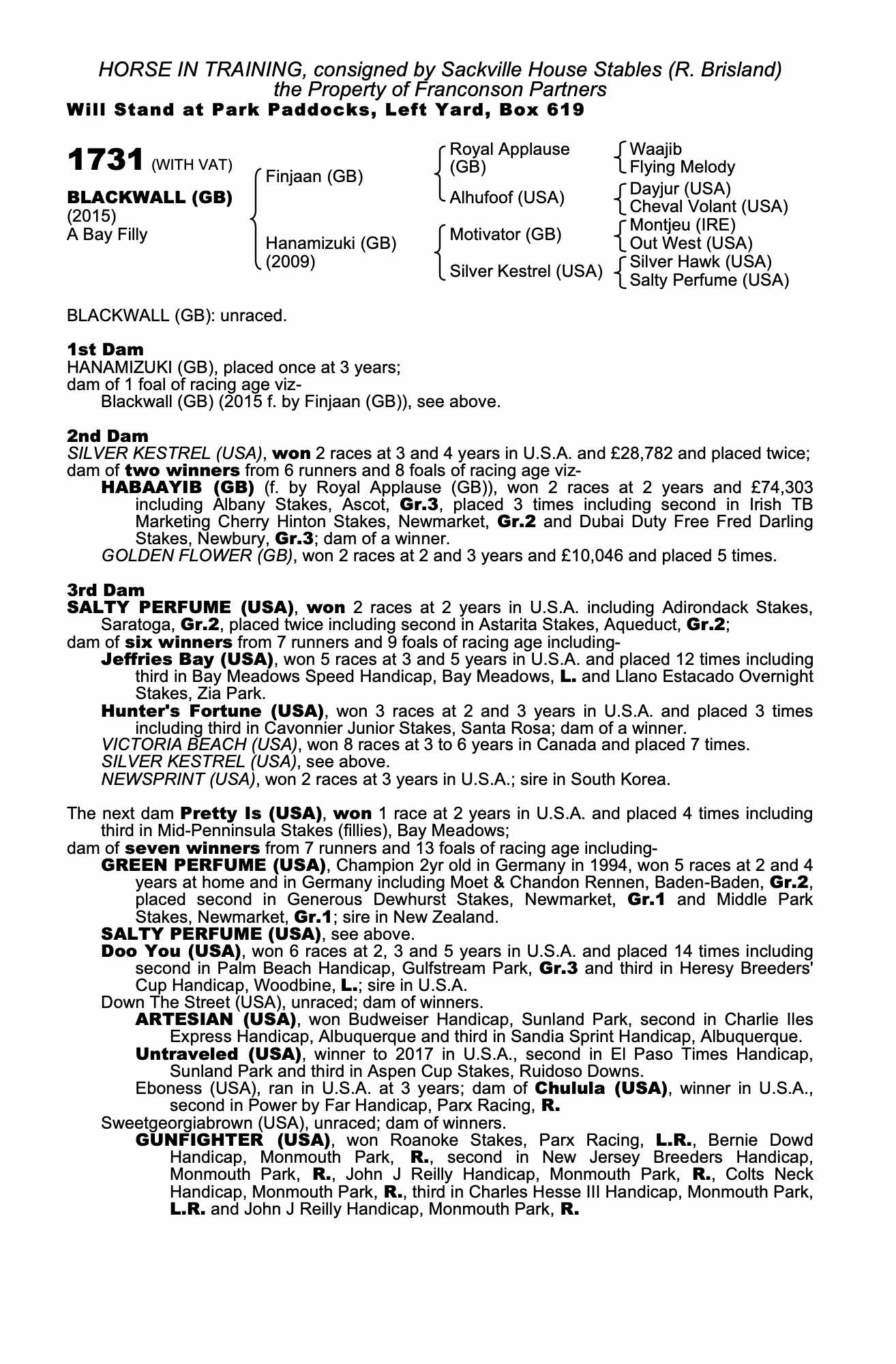 Consignor: Sackville House Stables (R. Brisland)
