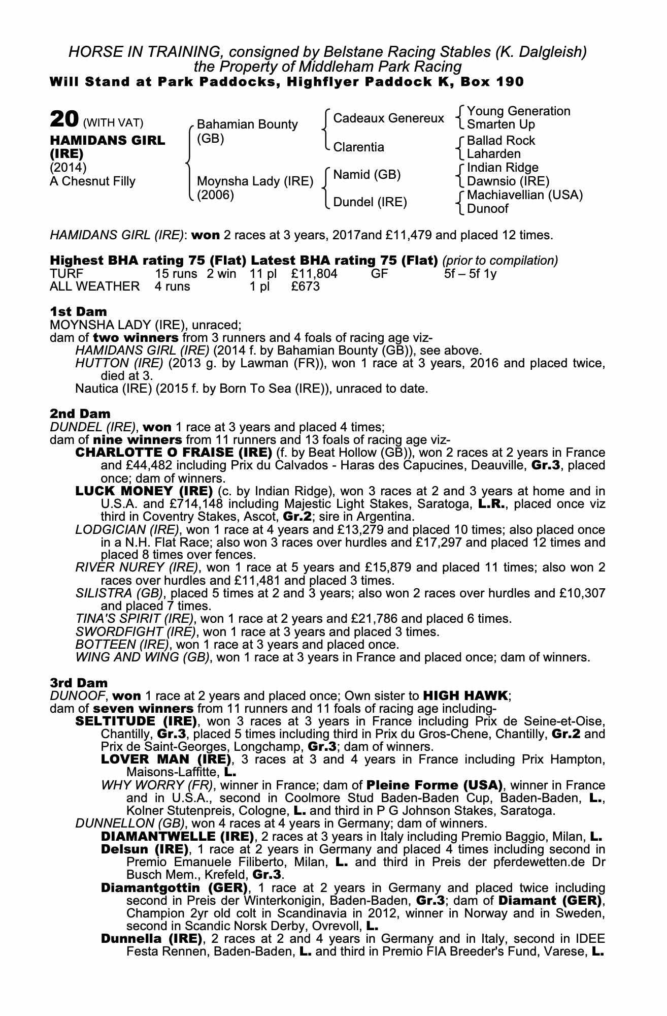 Consignor: Belstane Racing Stables (K. Dalgleish)