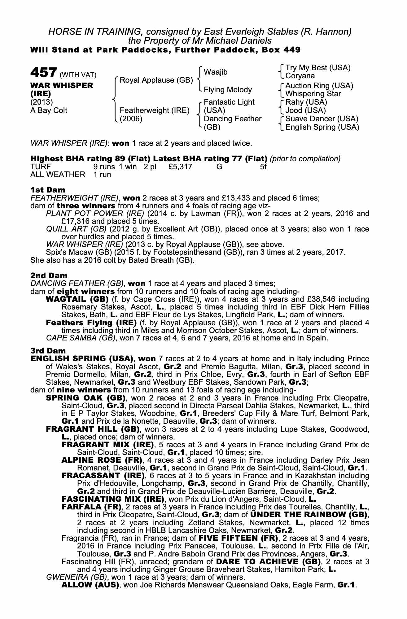 Consignor: East Everleigh Stables (R. Hannon)