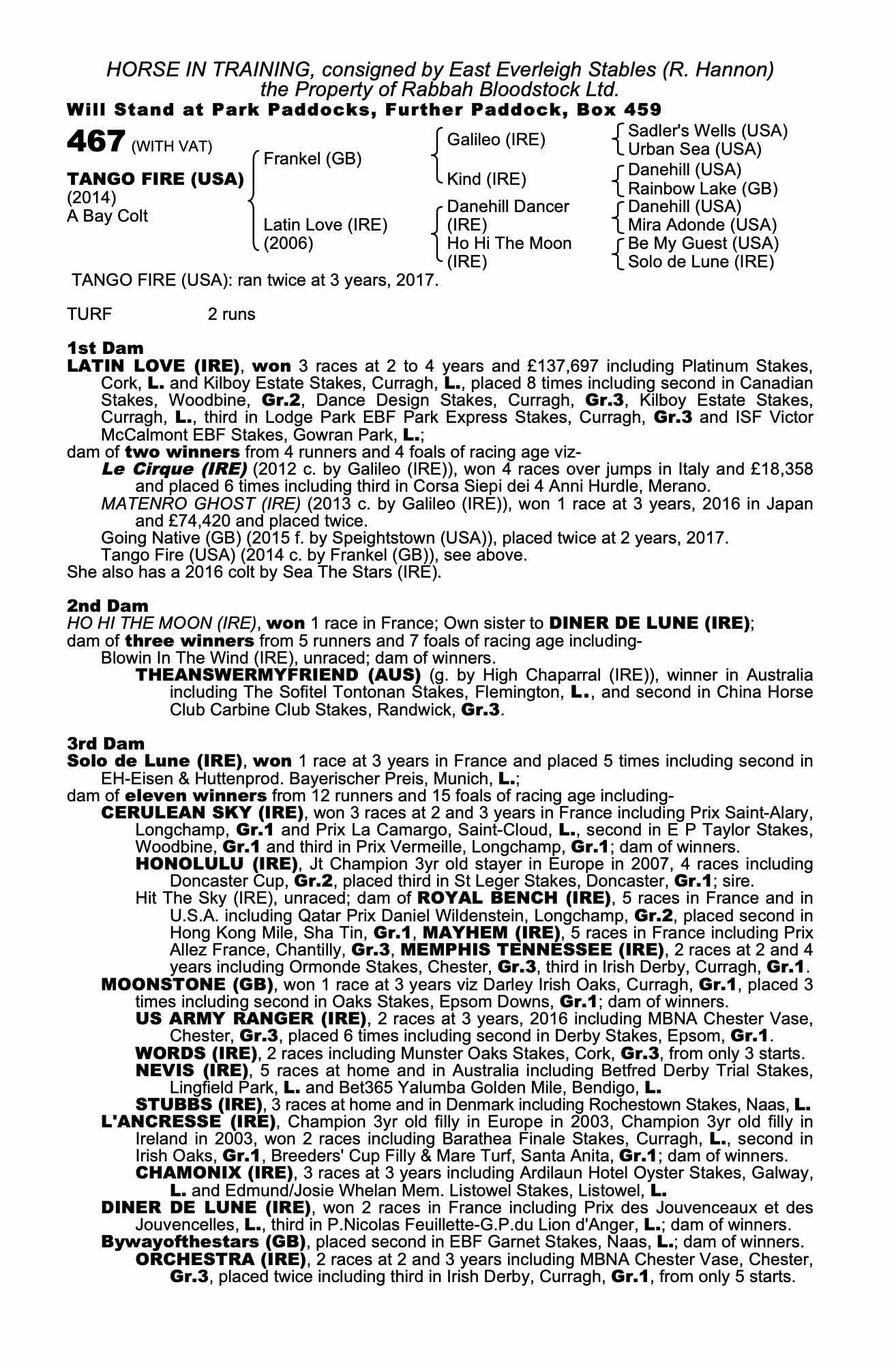 Under 3rd Dam – MOONSTONE (GB), dam of NELSON (IRE), won Golden Fleece Stakes, Leopardstown, Gr.3 and placed 2nd in Juddmonte Royal Lodge Stakes, Newmarket, Gr.2.