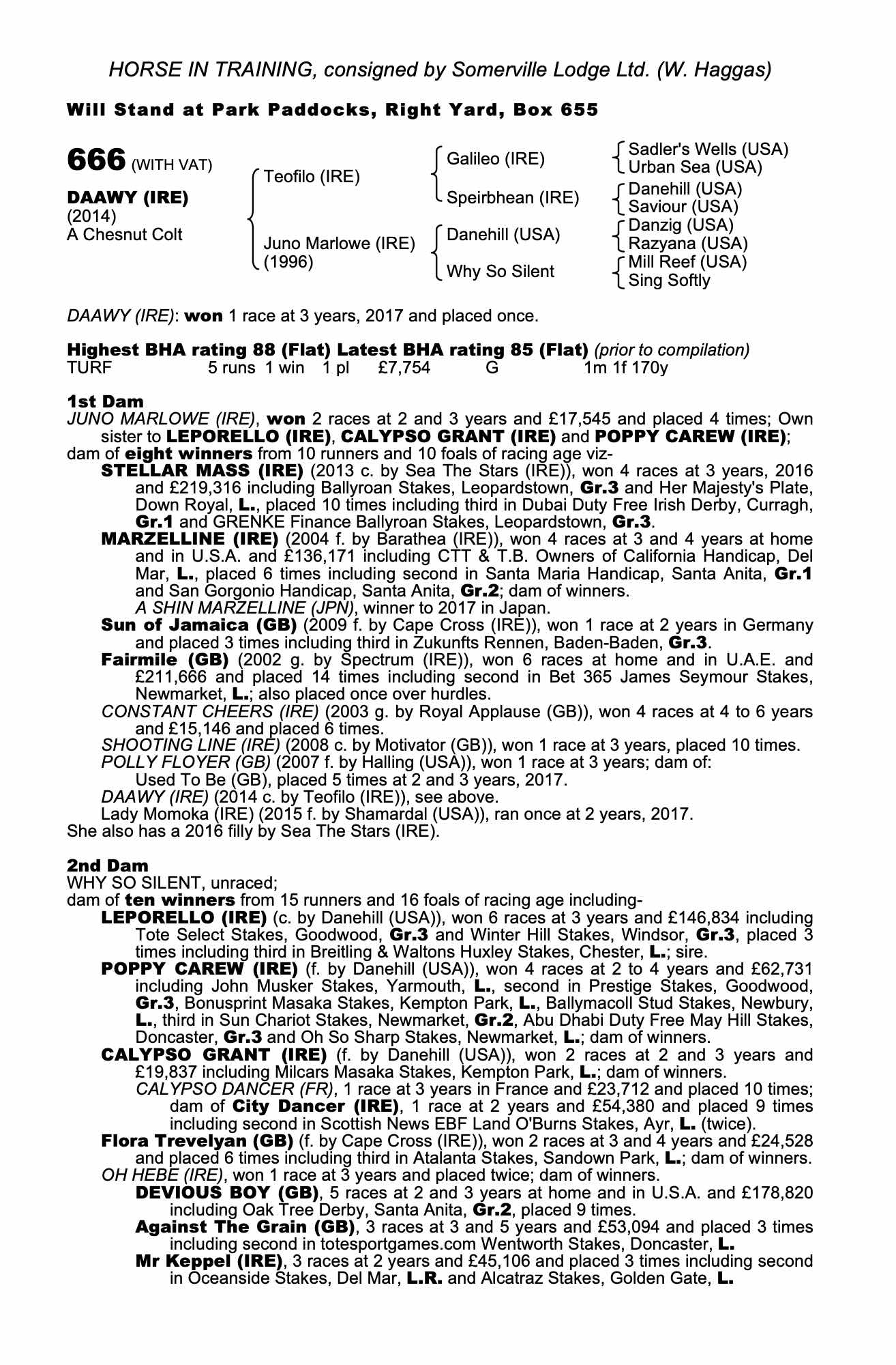 Consignor: Somerville Lodge Ltd. (W. Haggas)