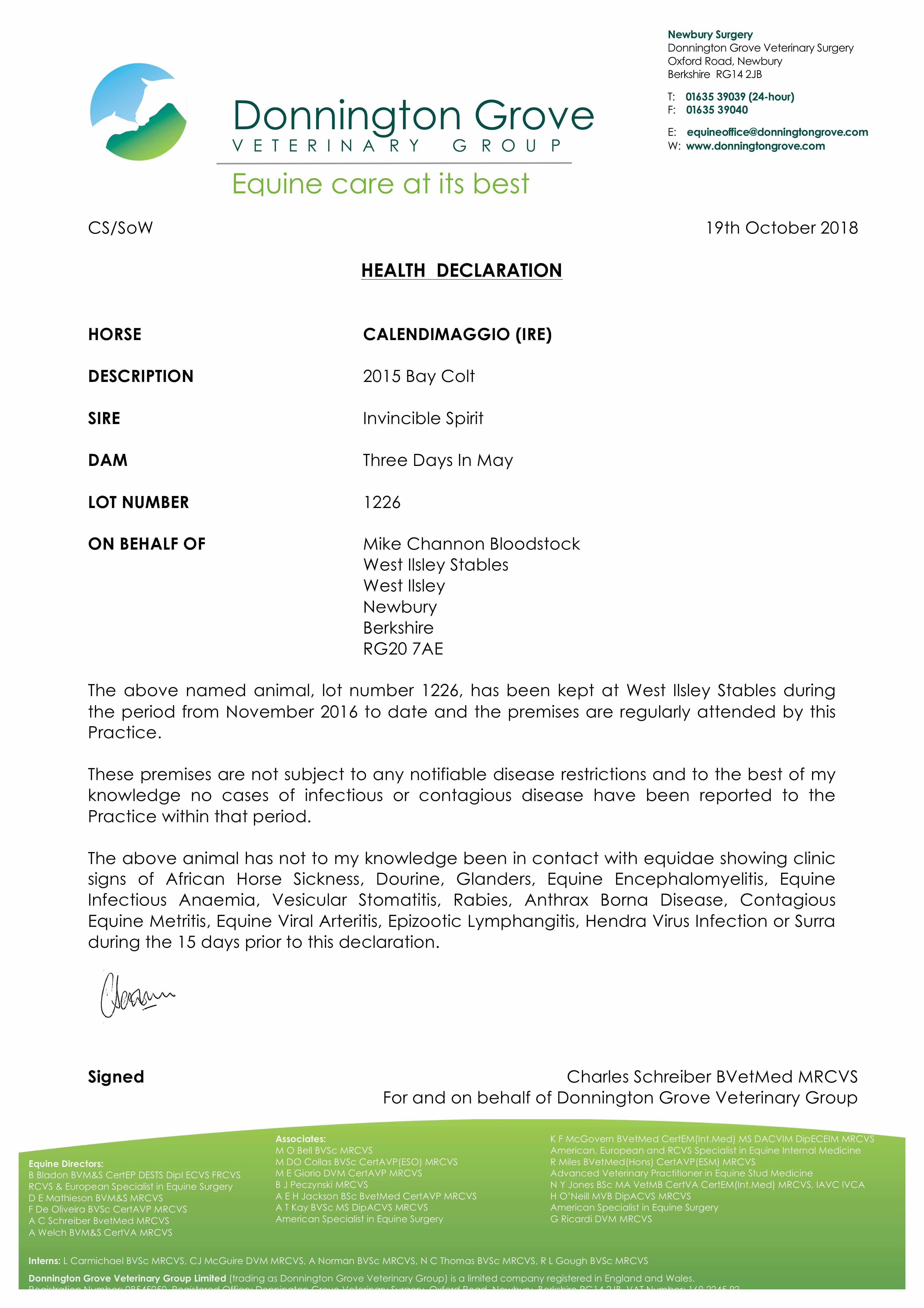 Online Charity Auction of Stallion Nominations lot 22 A Nomination to Gregorian (IRE) (H. by Clodovil (IRE)), =>Michael C Grassick £1,800