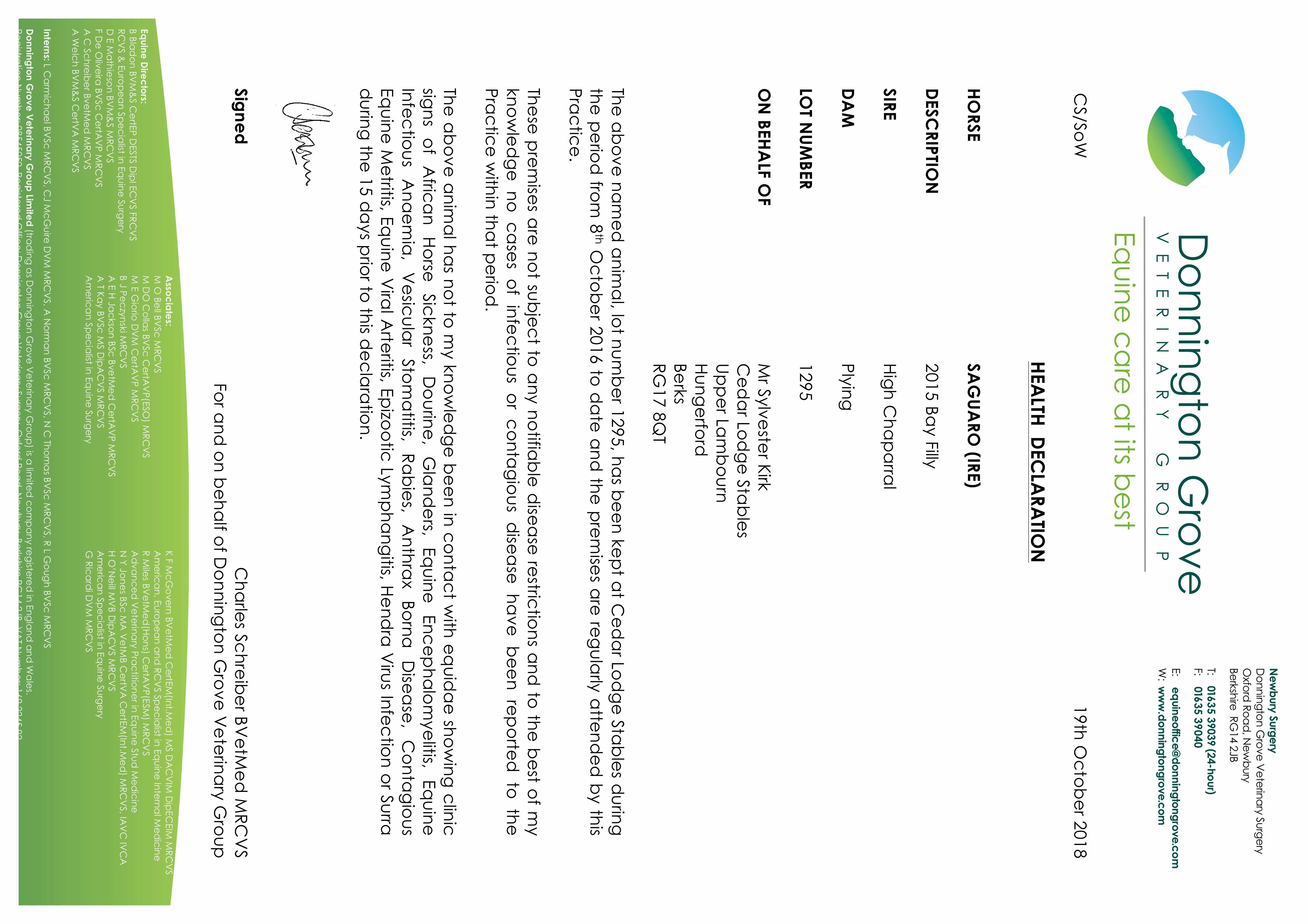 Consignor: Cedar Lodge Stables (S. Kirk)