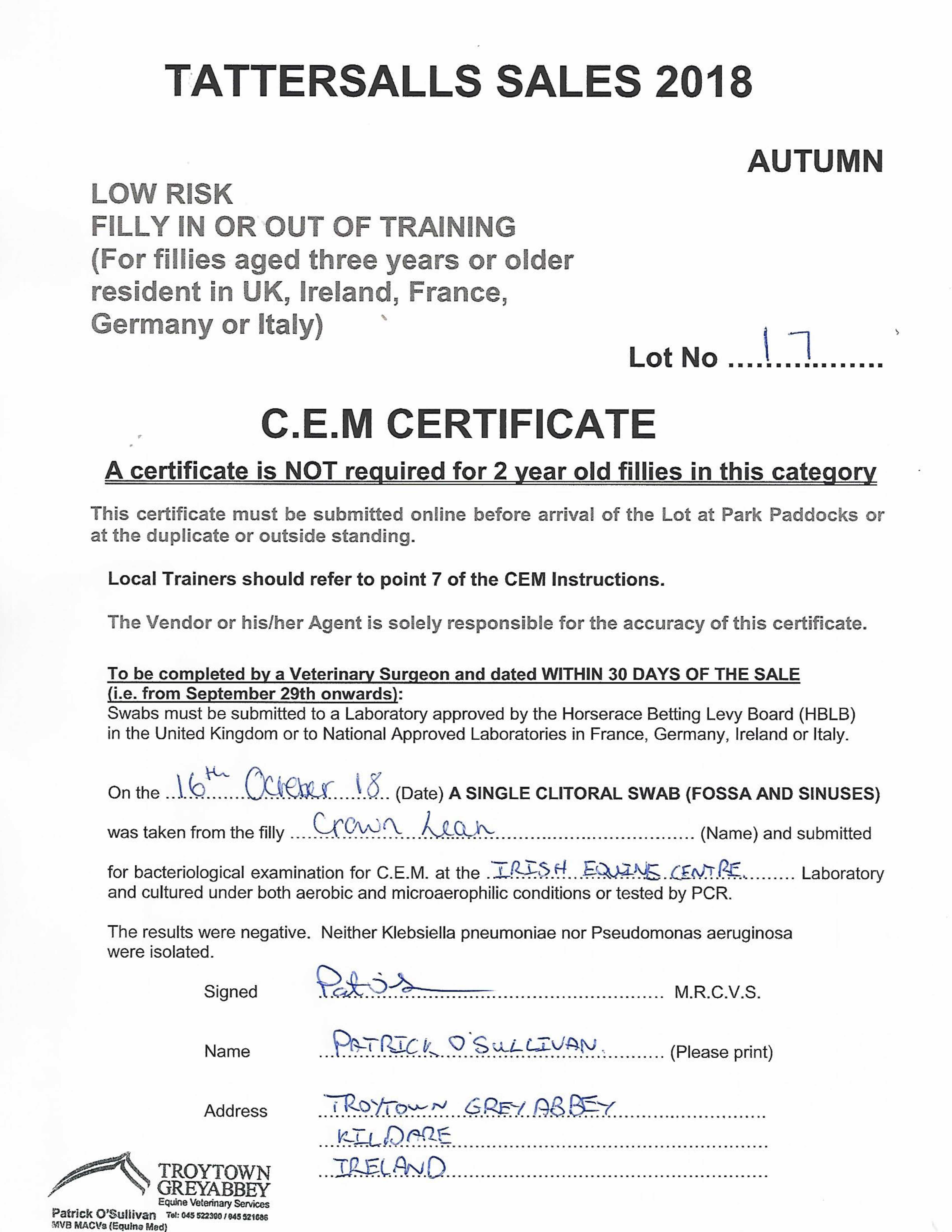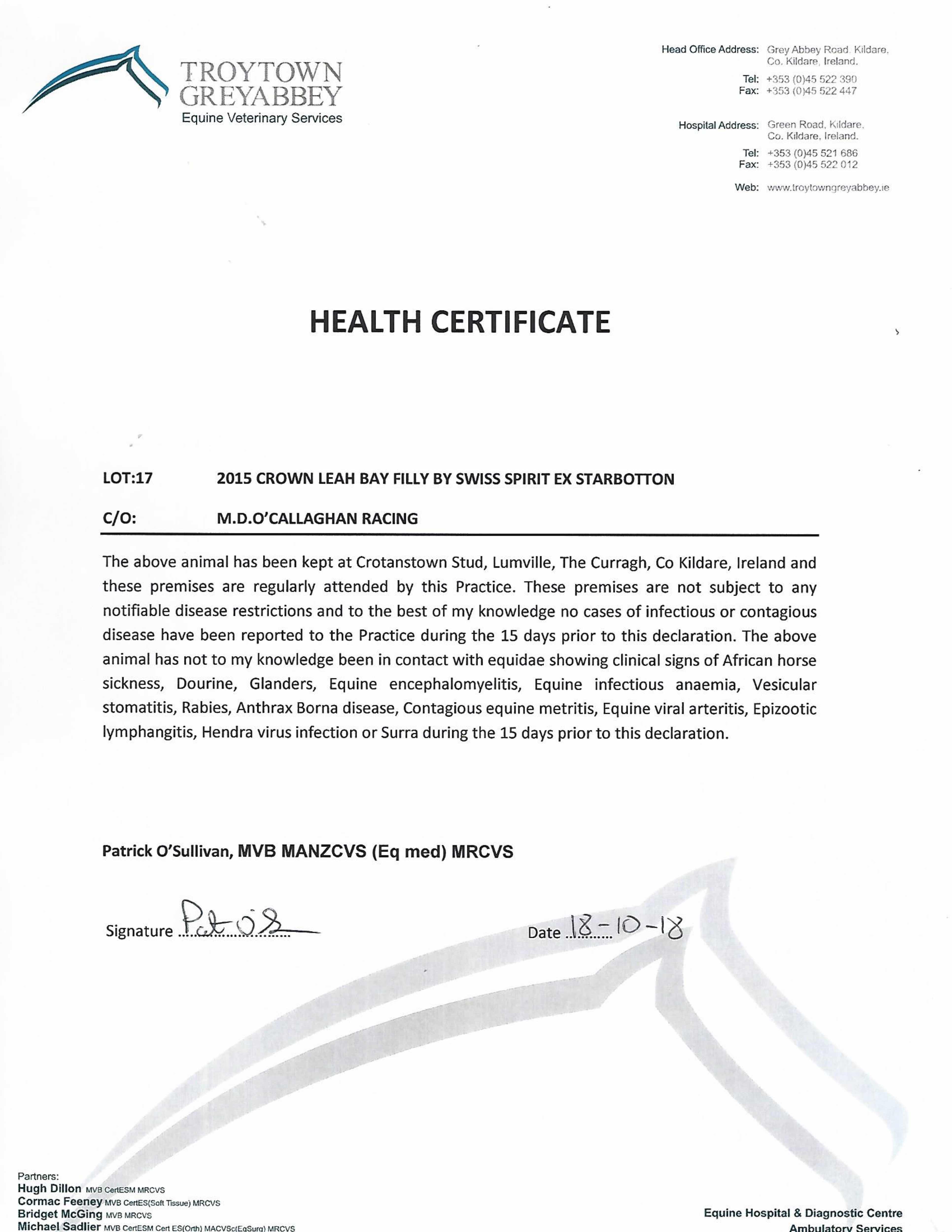 Consignor: M. D. O'Callaghan Racing, Ireland