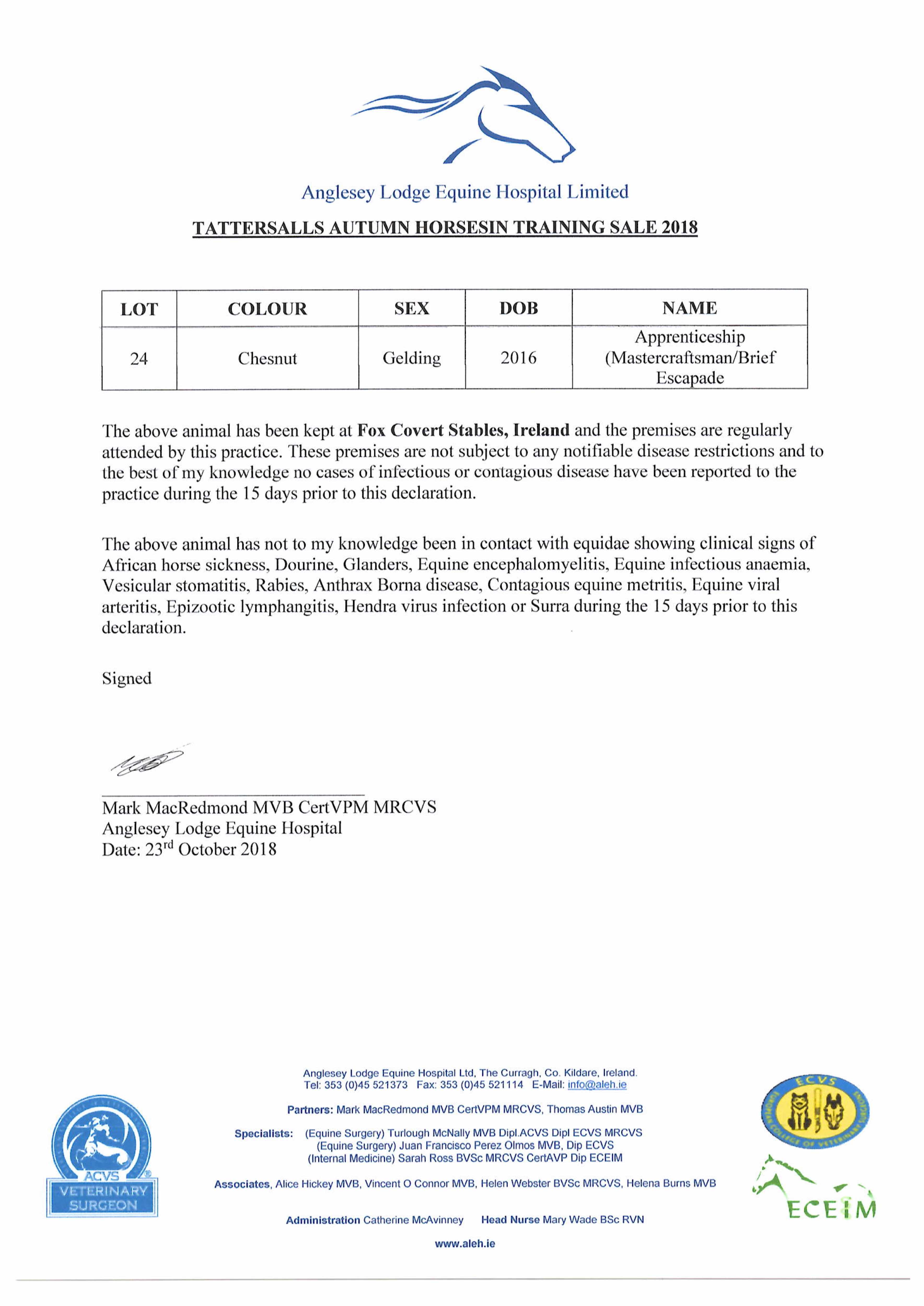 Autumn Horses in Training Sale 2018 lot 175 Escapability (IRE) (G. by Excelebration (IRE)), Jamie Railton (Agent)=>Highflyer Bloodstock / A King 18,000 gns
