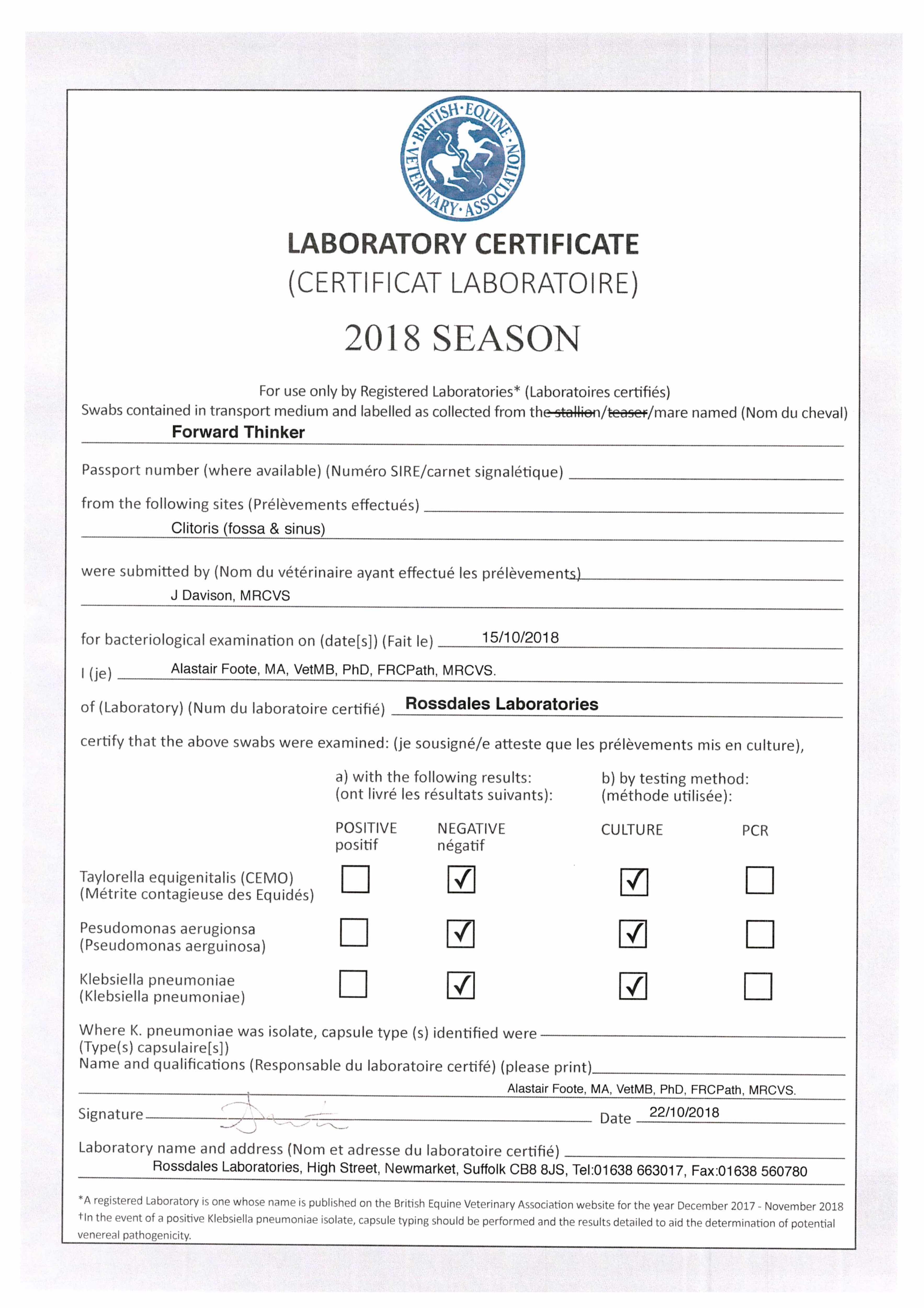 Guineas Horses in Training Sale 2018 lot 73, Trillium Place Stables (D. Simcock)=>A C Elliott, Agent 3,000 gns