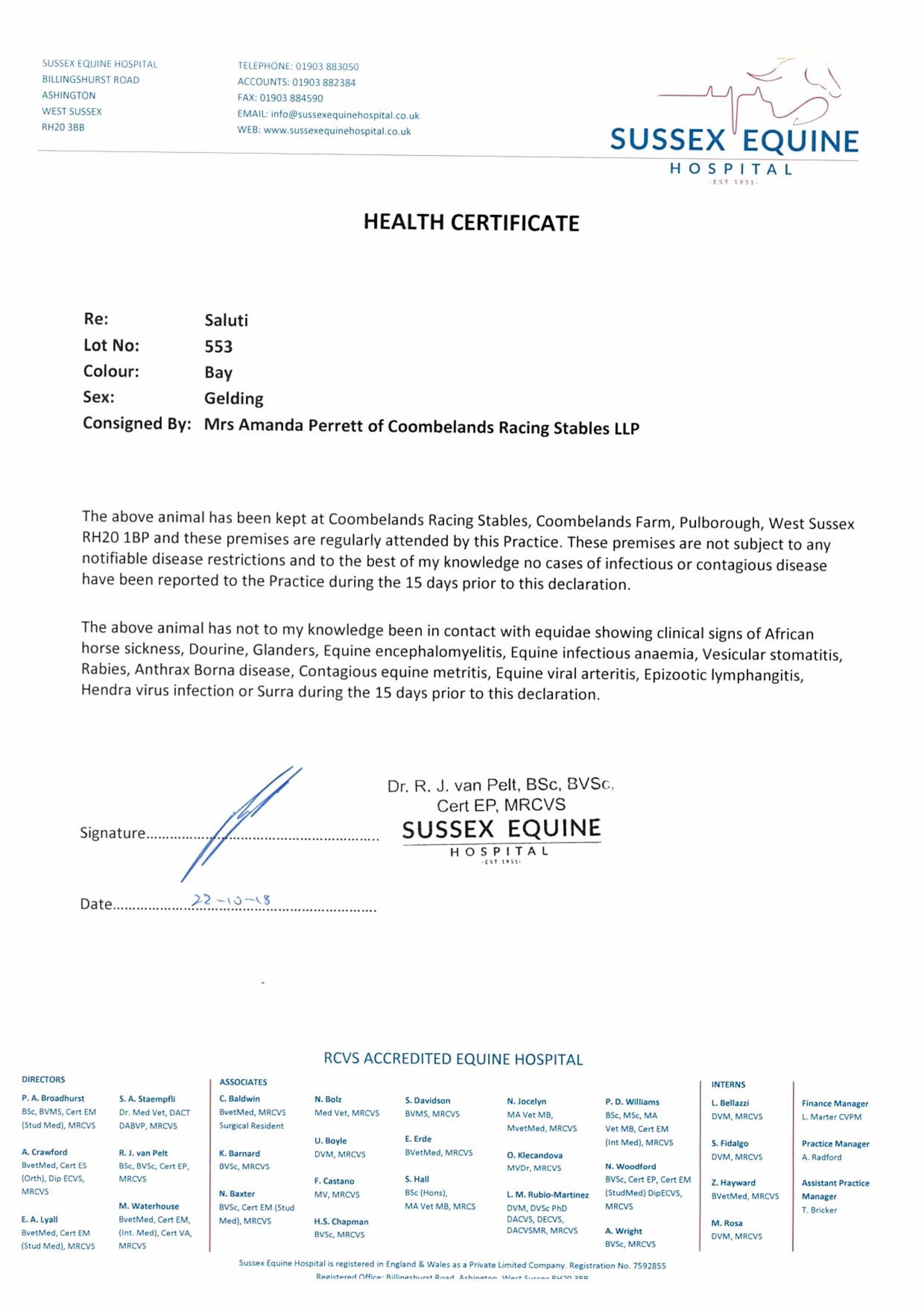 Consignor: Coombelands Racing Stables (Mrs A. Perrett)