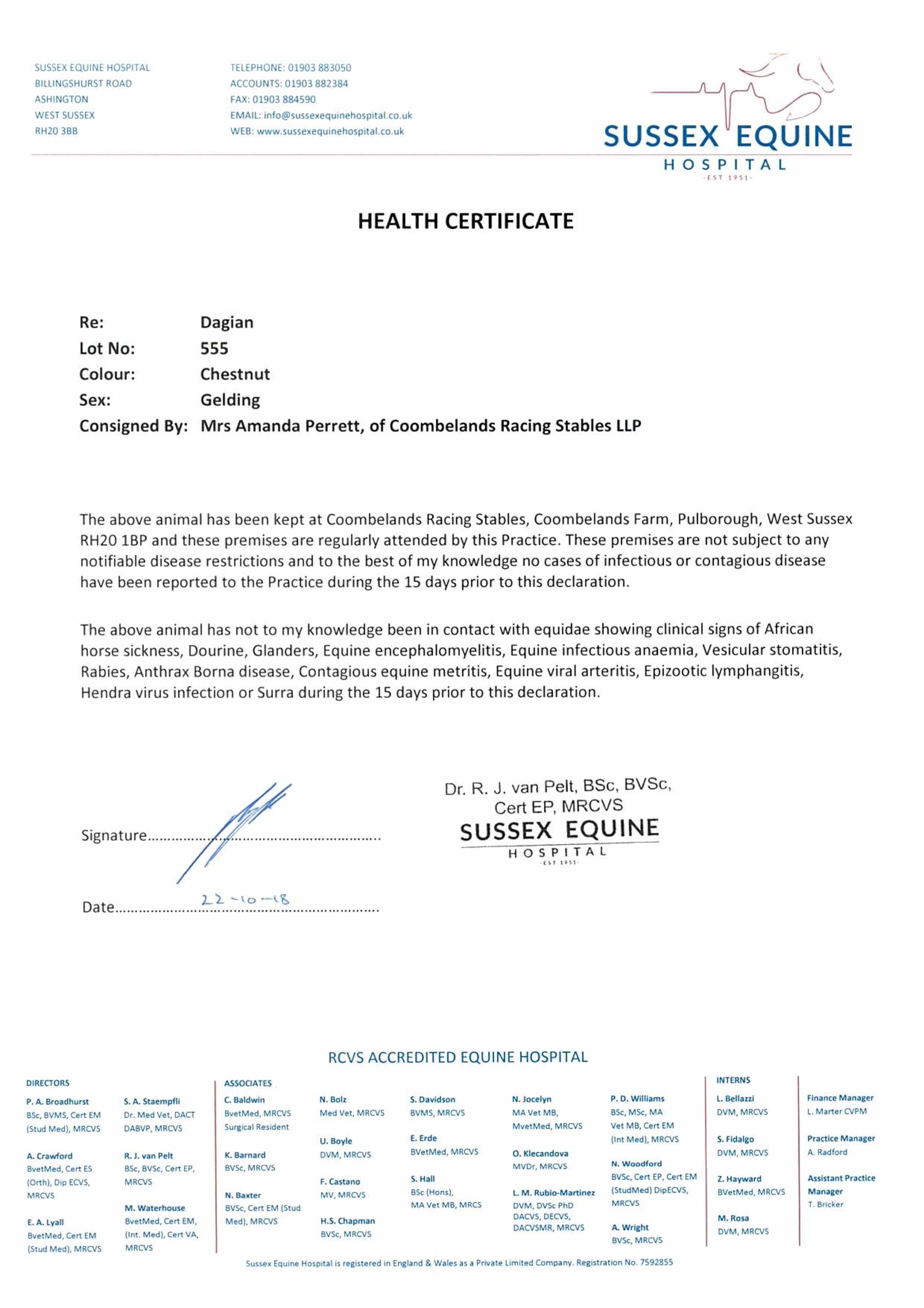 Consignor: Coombelands Racing Stables (Mrs A. Perrett)