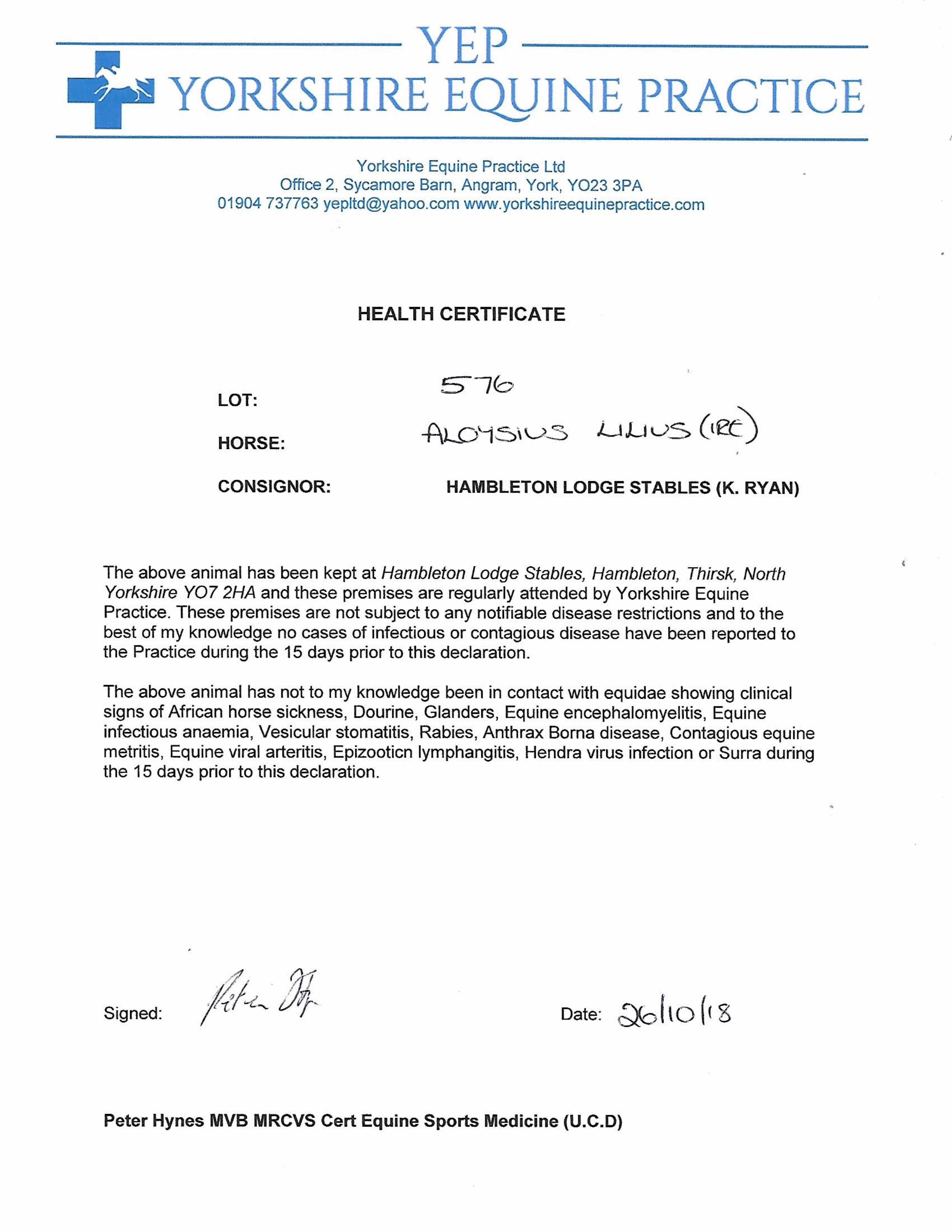 Consignor: Hambleton Lodge Stables (K. Ryan)