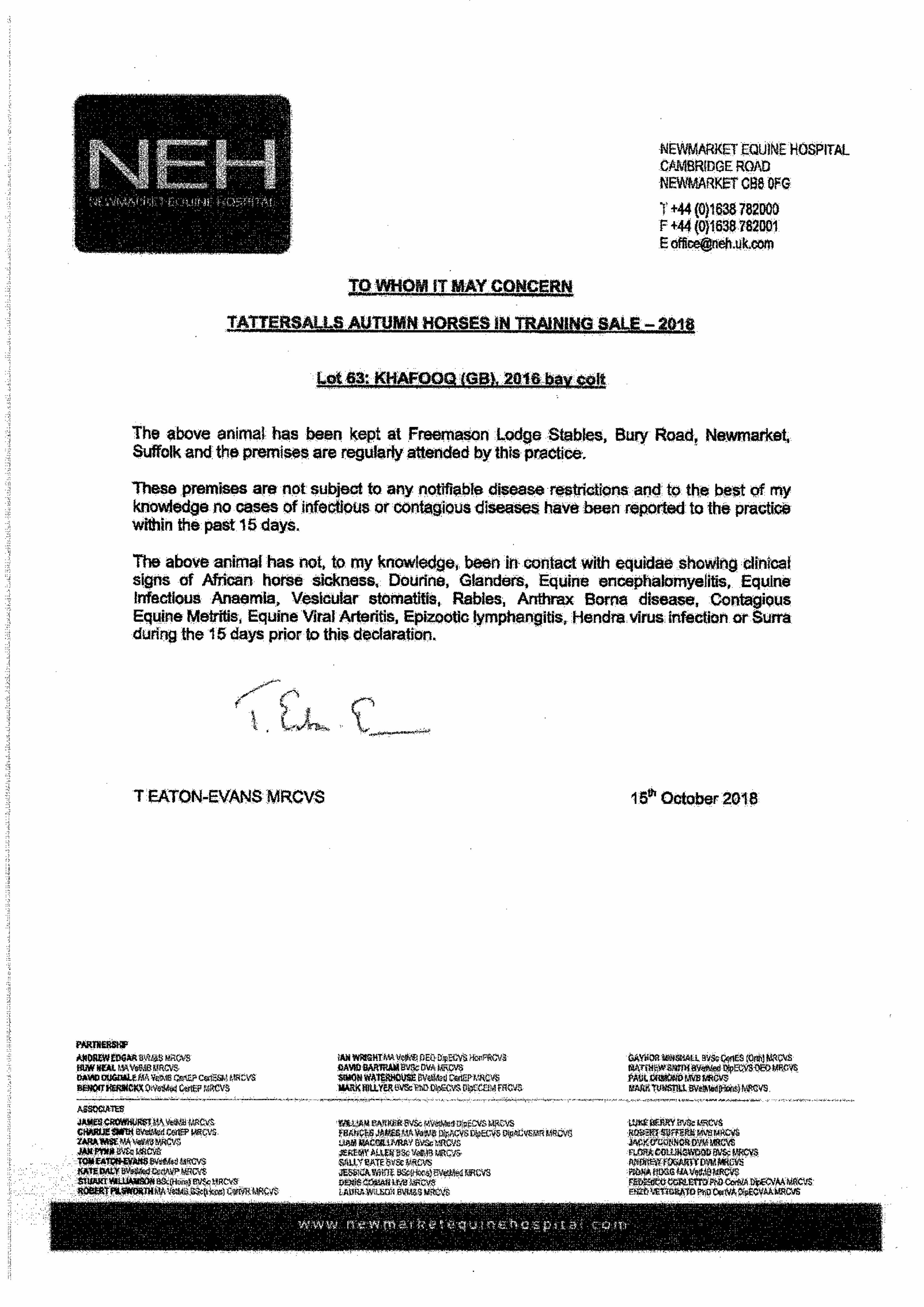 July Sale 2019 lot 666, Jamie Railton (Agent)=>Gassim Mohammad Ghazali 30,000 gns