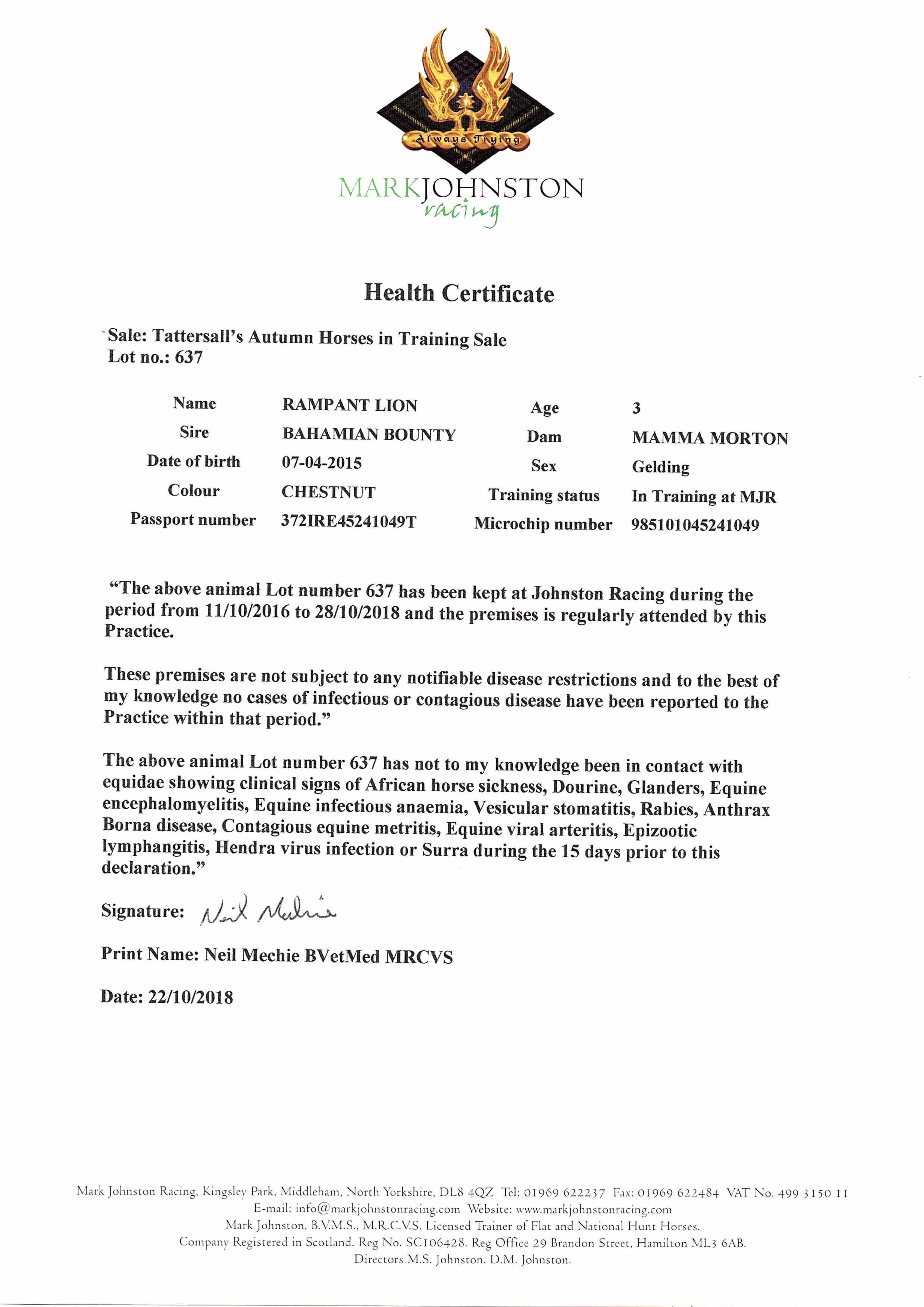 October Yearling Sale, Book 2 2018 lot 1267 F. by Lope de Vega (IRE) 2017, Whitsbury Manor Stud=>Vendor 30,000 gns