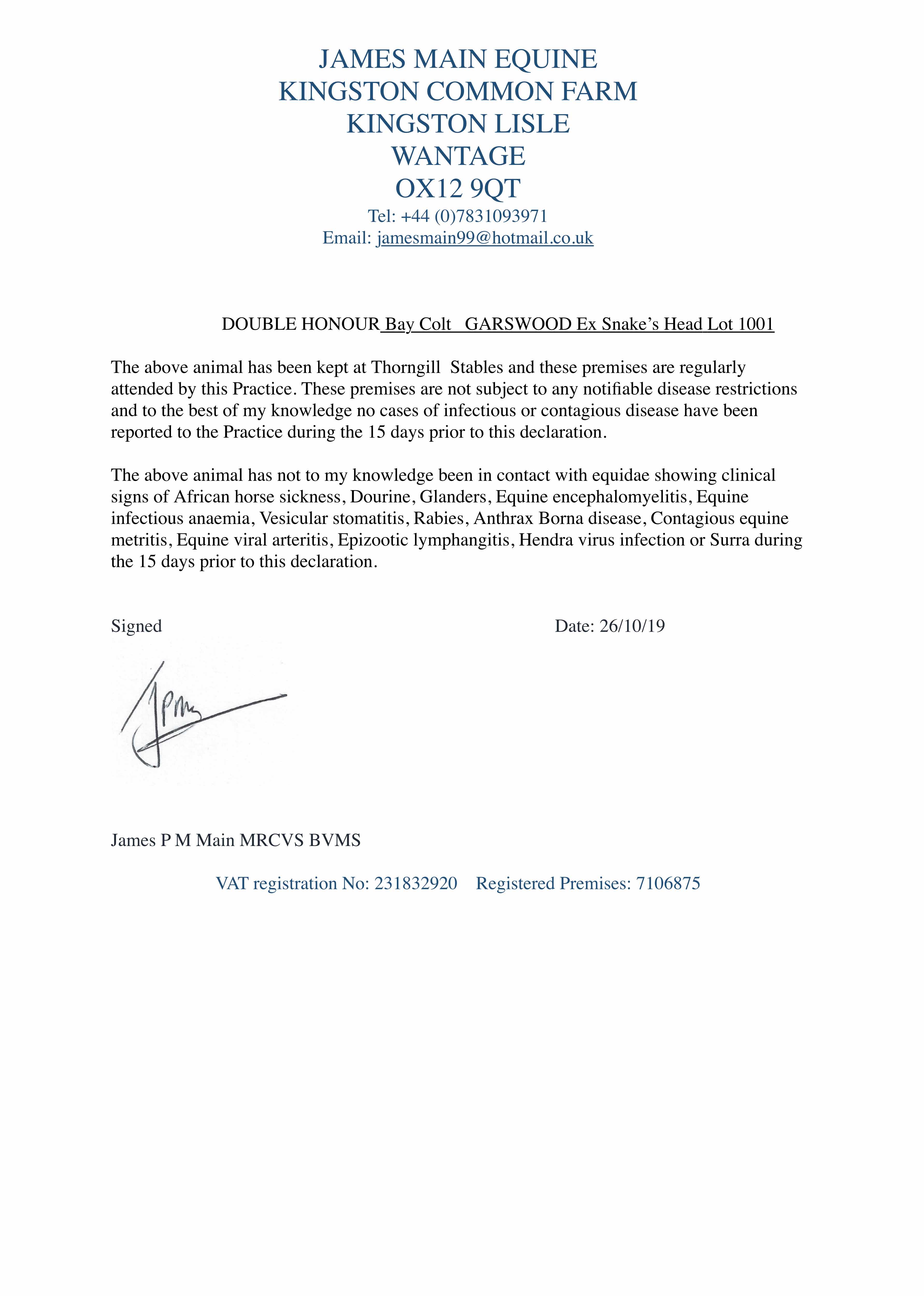 Consignor: Thorngill Stables (Hon. J. D. Bethell)
