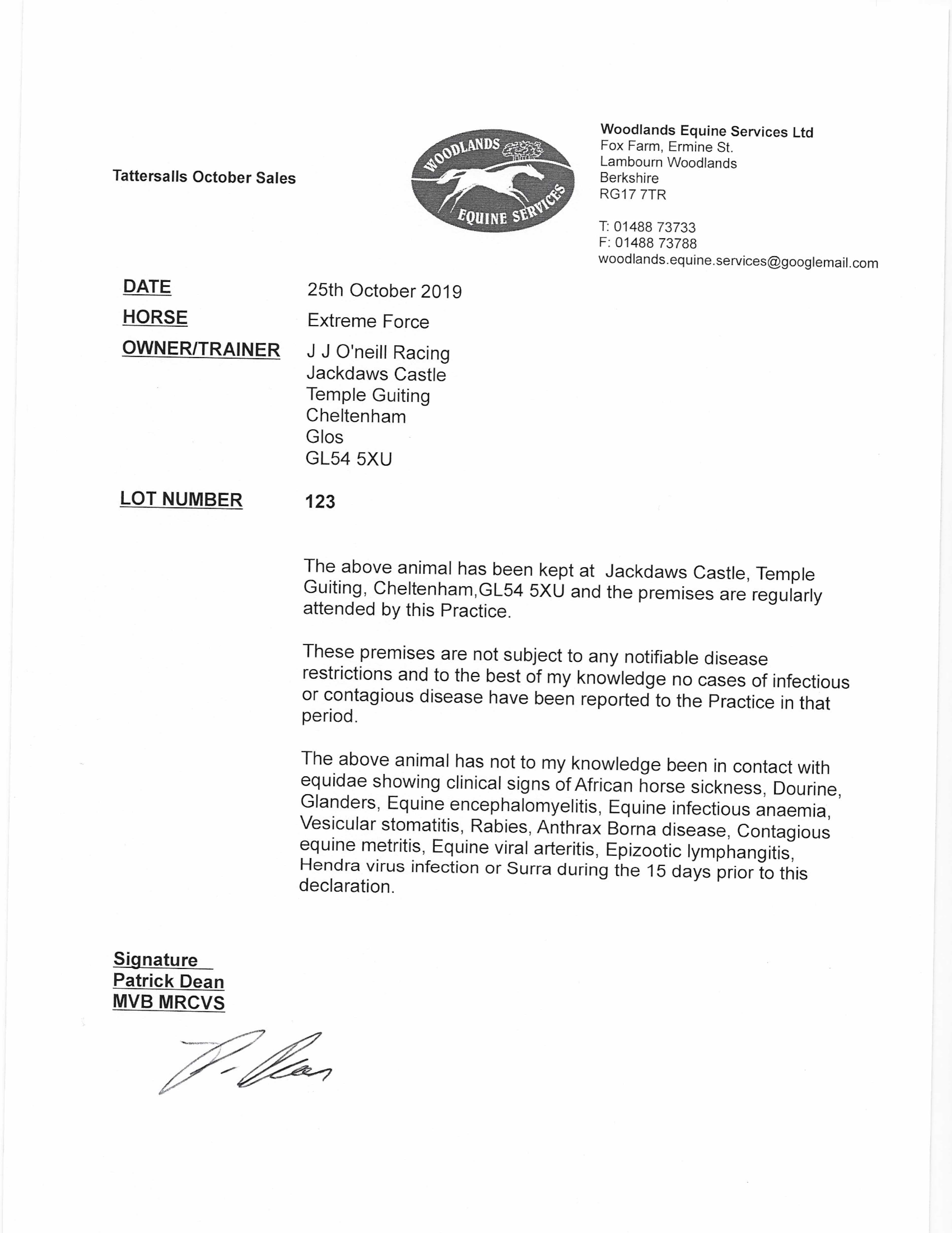 Consignor: Jackdaws Castle (J. J. O'Neill)