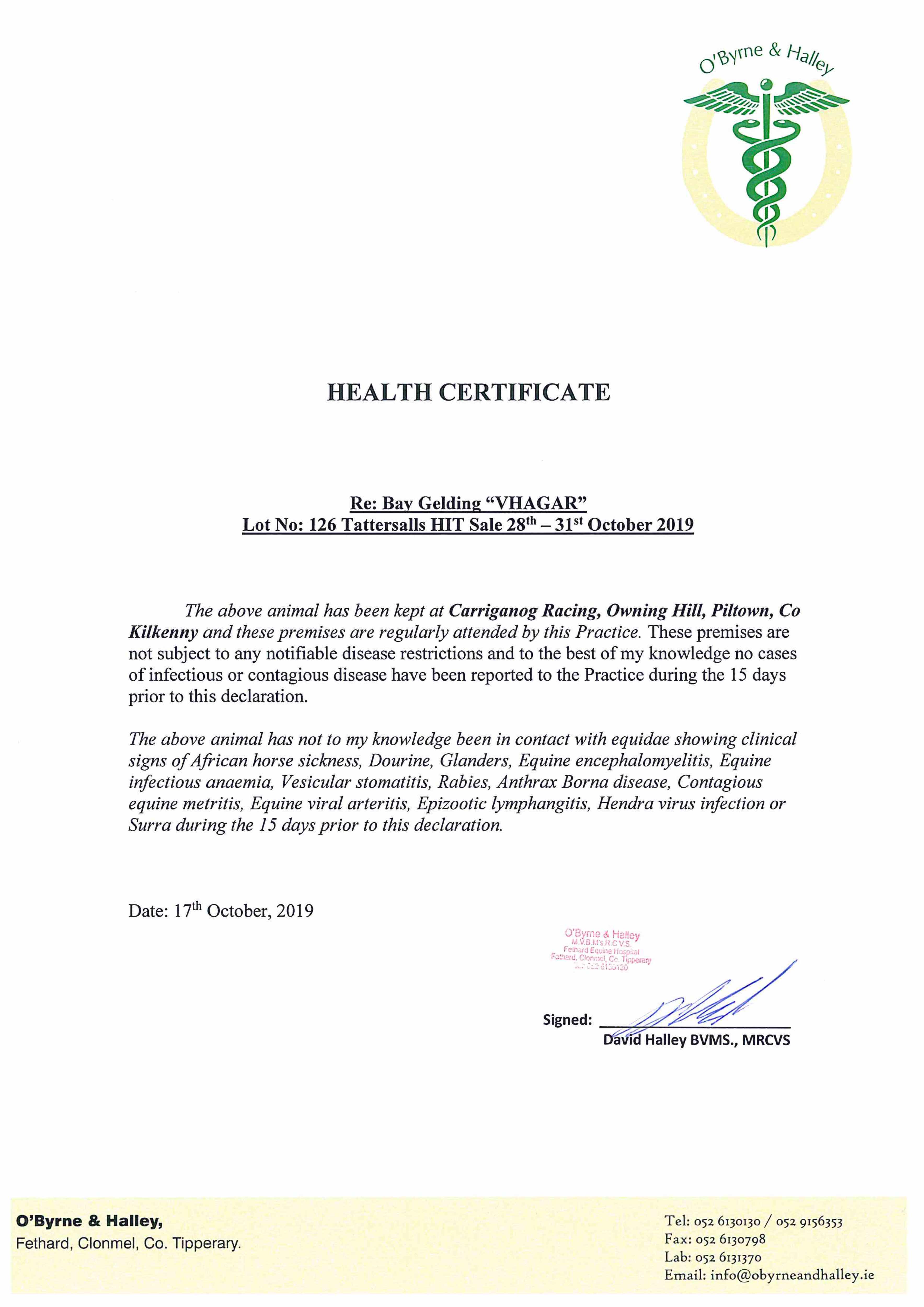 Consignor: Carriganog Racing, Ireland (J. P. O'Brien)