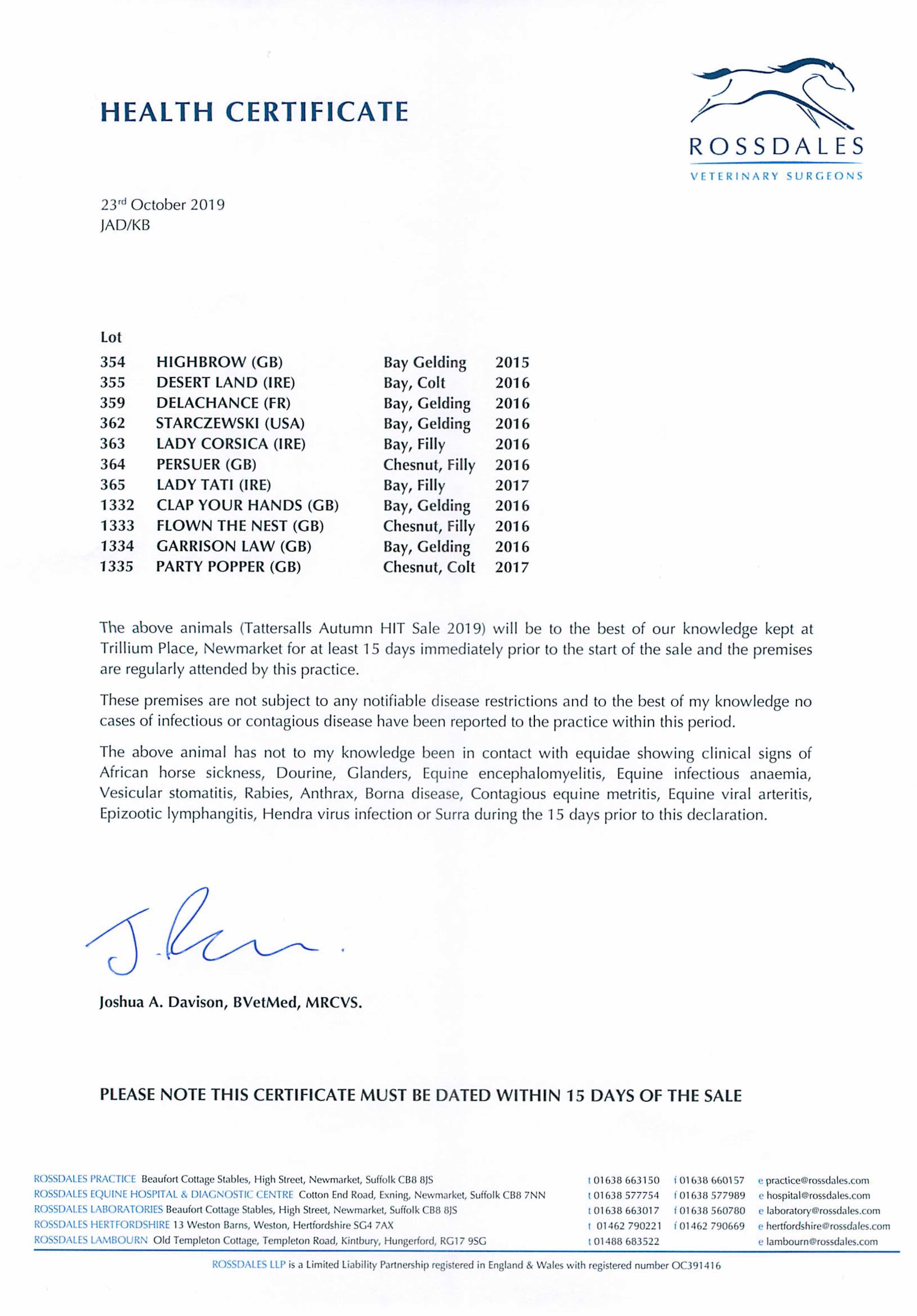 Consignor: Trillium Place Stables (D. Simcock)
