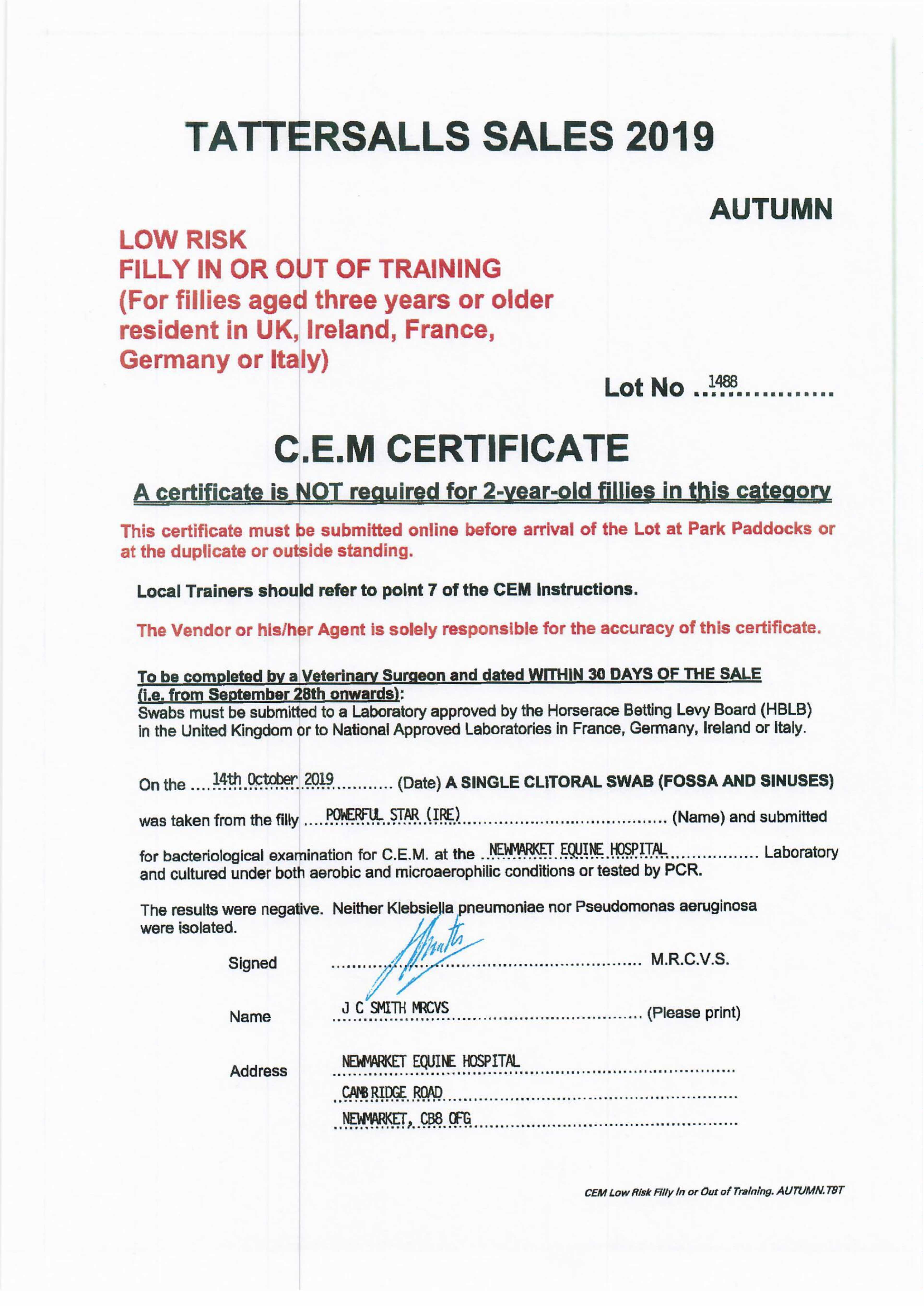 December Foal Sale 2015 lot 1256 F. by Cape Cross (IRE) 2015, Greenville House Stud, Ireland=>Norris/Huntingdon 120,000 gns