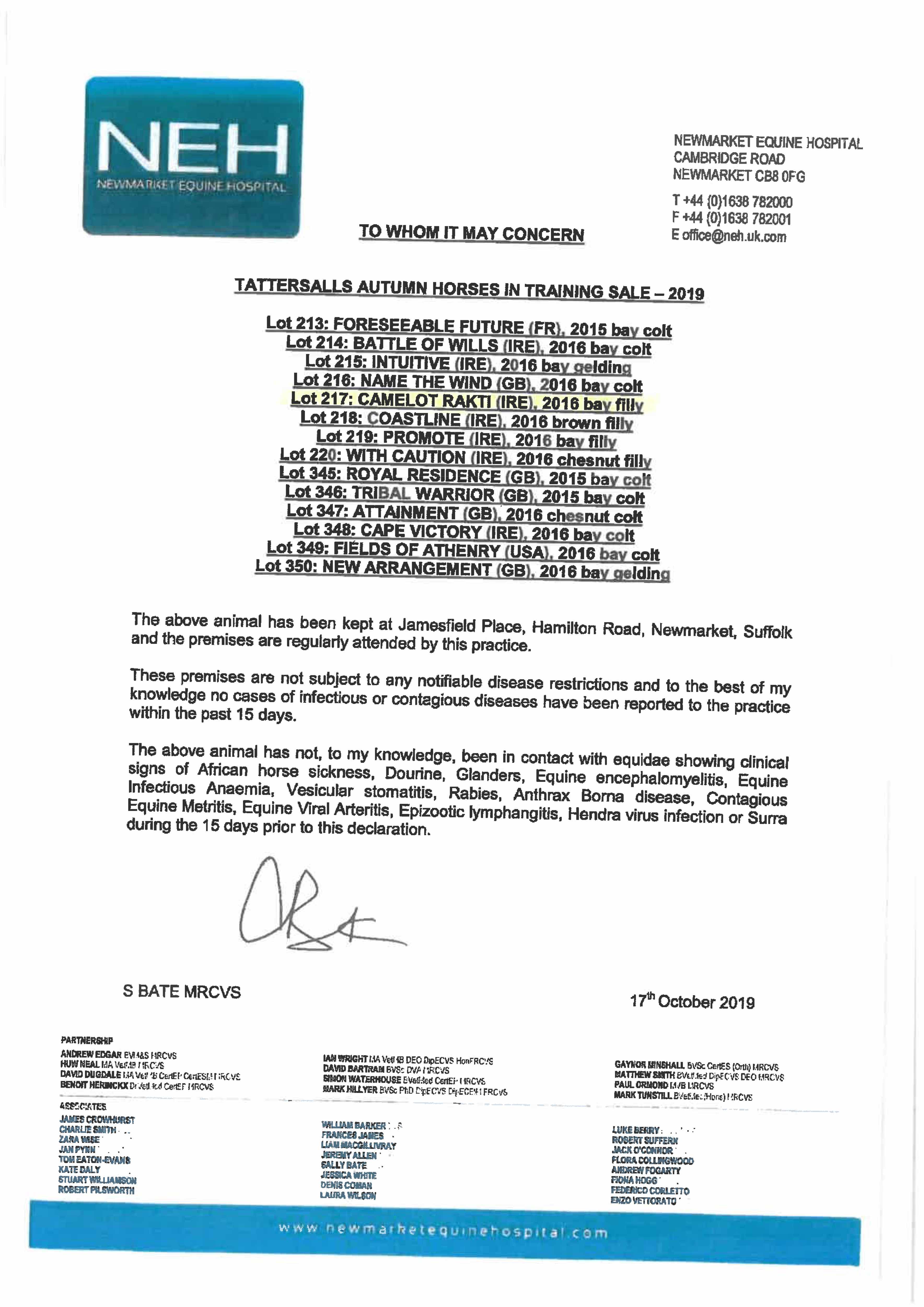 October Yearling Sale, Book 2 2014 lot 834 C. by Acclamation (GB) 2013, Rathbarry Stud, Ireland=>Shadwell Estate Company 100,000 gns