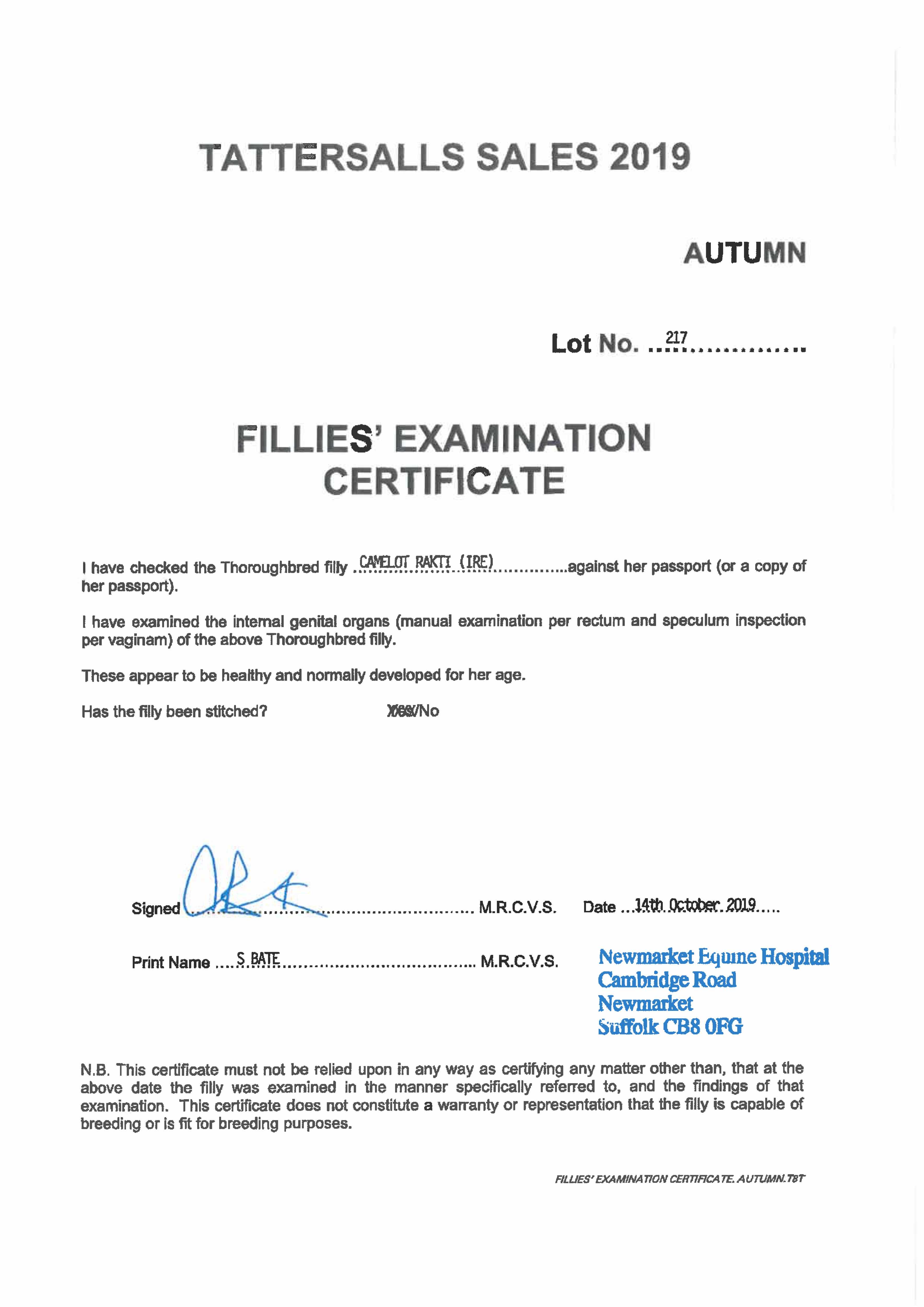 October Yearling Sale, Book 3 2021 lot 1895 F. by Tamayuz (GB) 2020, Rathbarry Stud, Ireland=>One Agency 47,000 gns