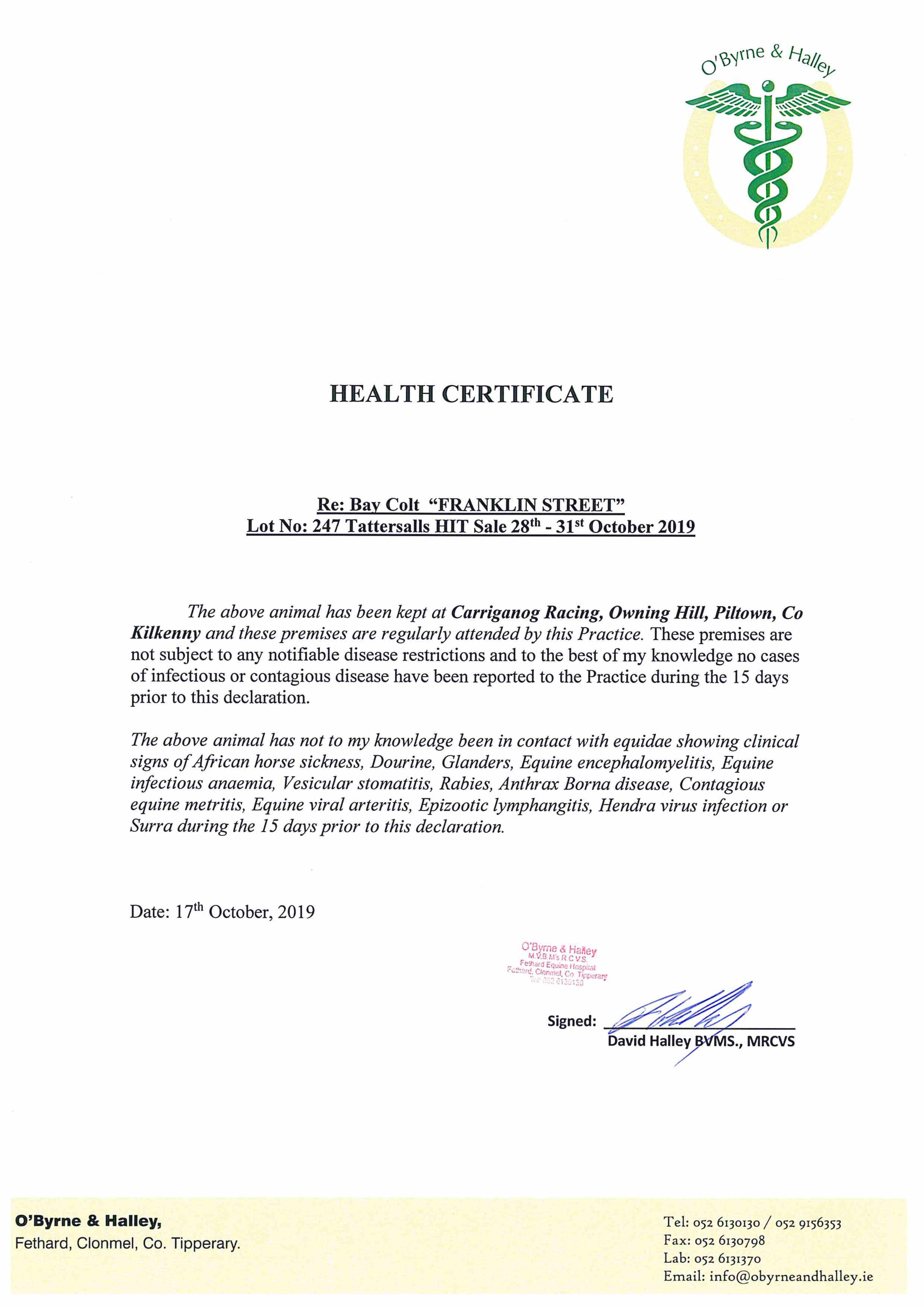 Consignor: Carriganog Racing, Ireland (J. P. O'Brien)