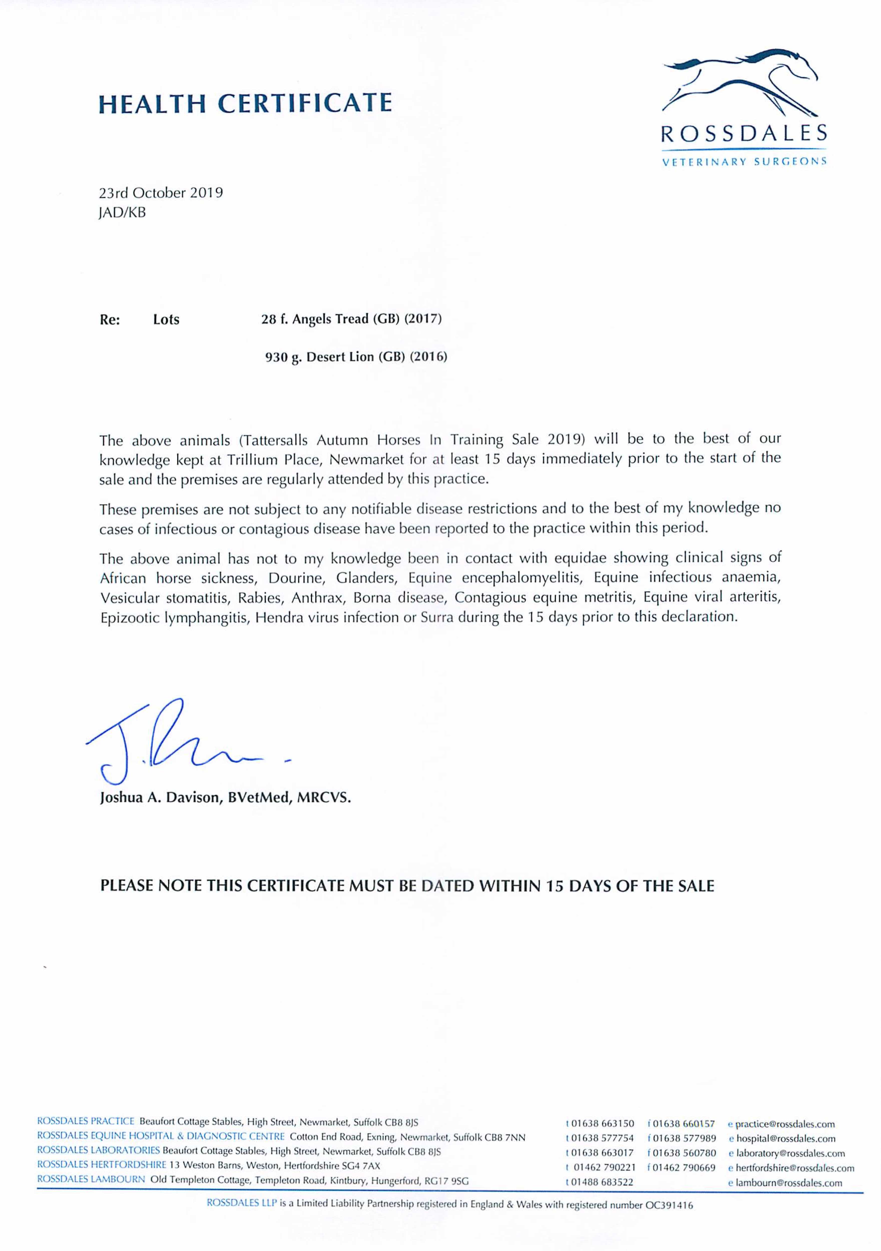 December Foal Sale 2019 lot 342 F. by Bobby's Kitten (USA) 2019, Voute Sales Ltd. (Agent)=>Lot Not Sold