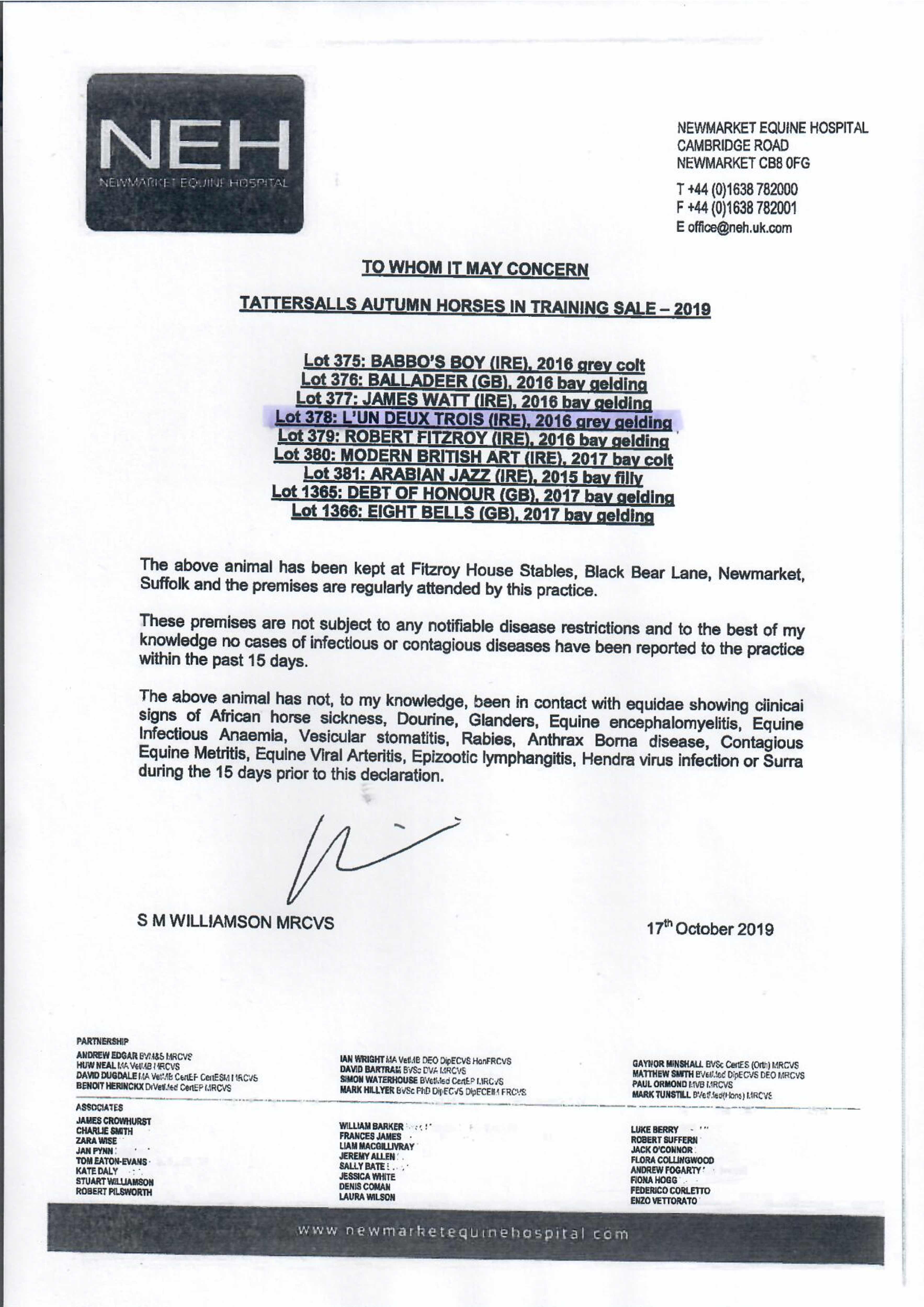 Consignor: Fitzroy House (M. Bell)