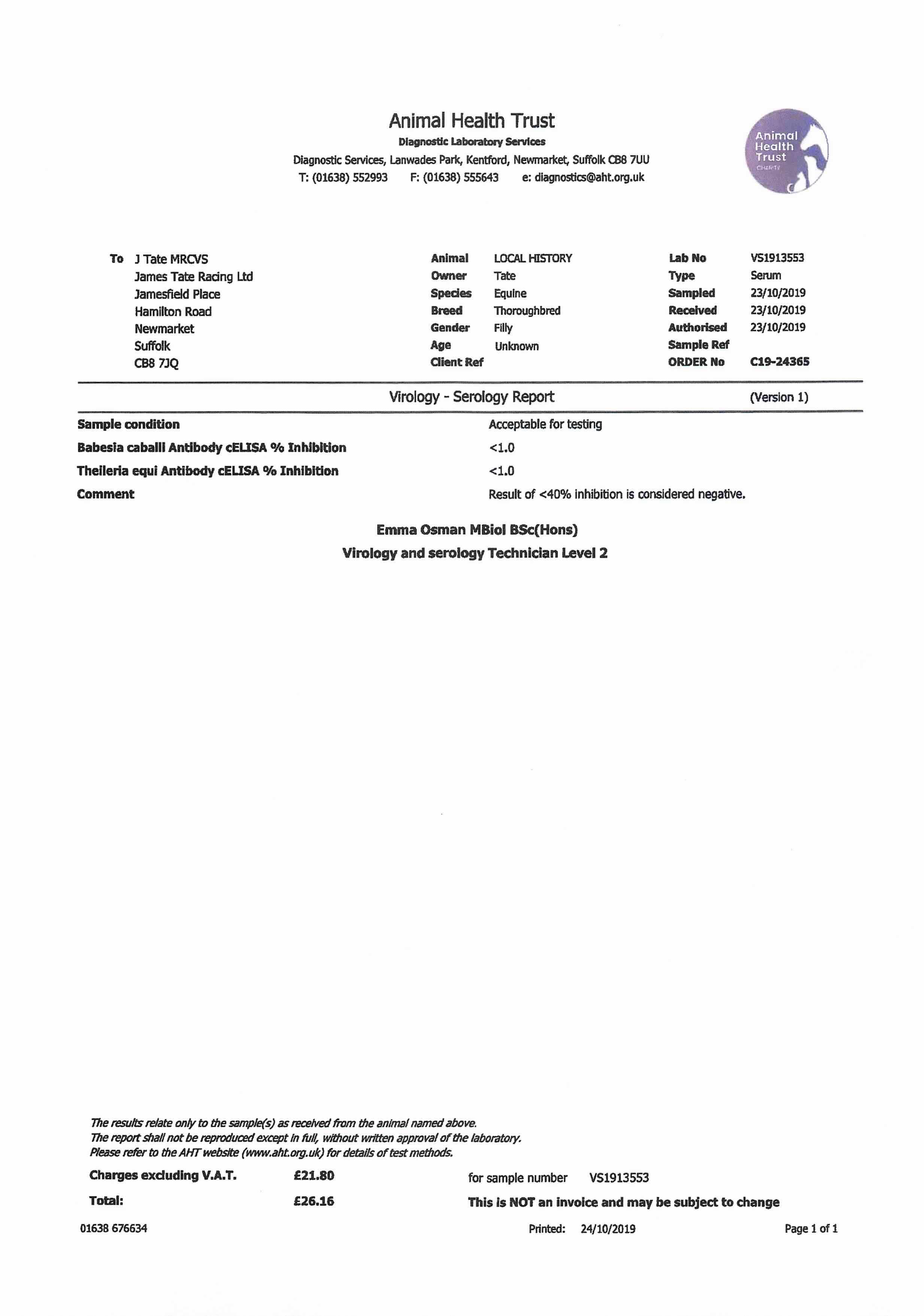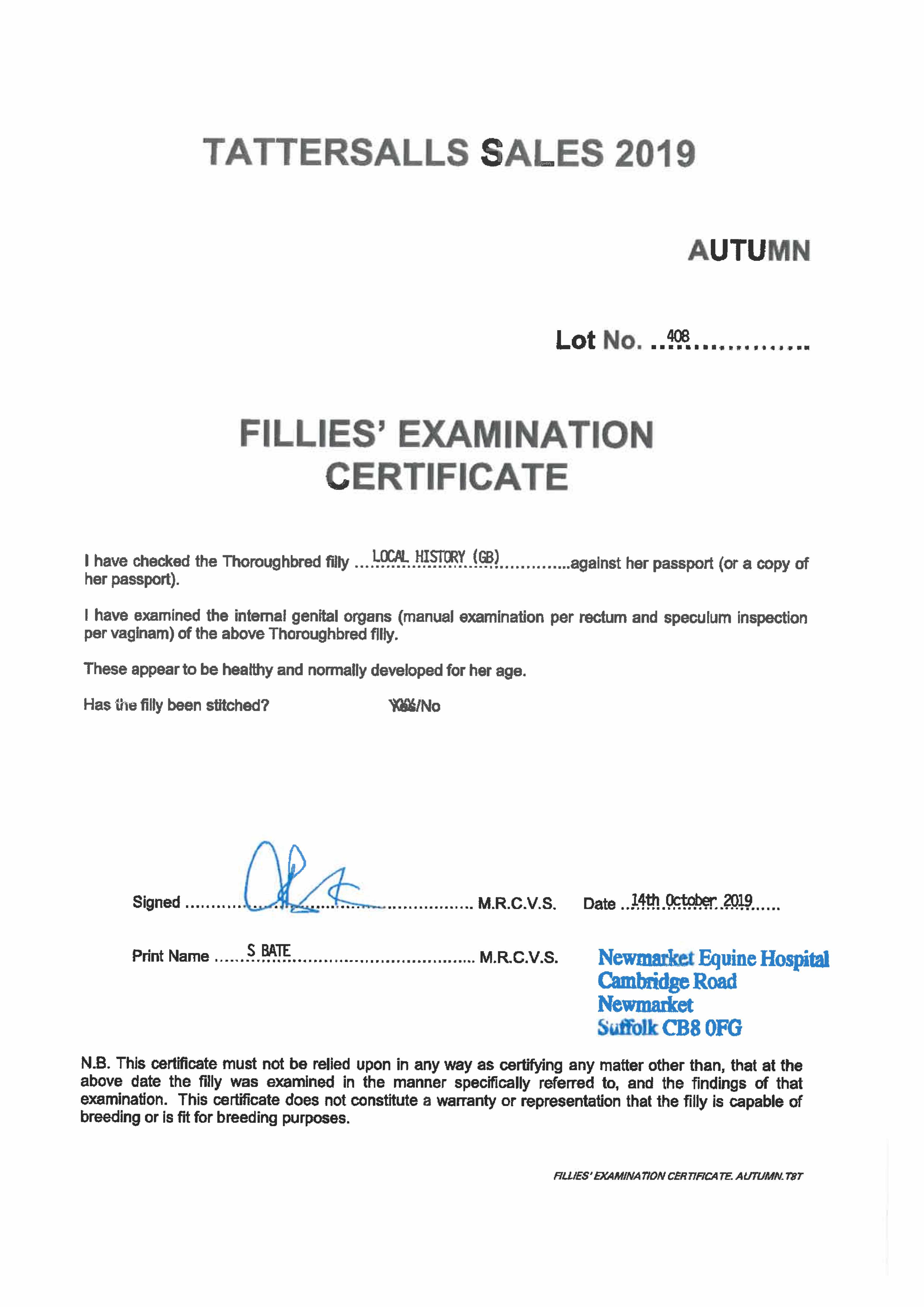 Consignor: Jamesfield Stables (J. Tate)