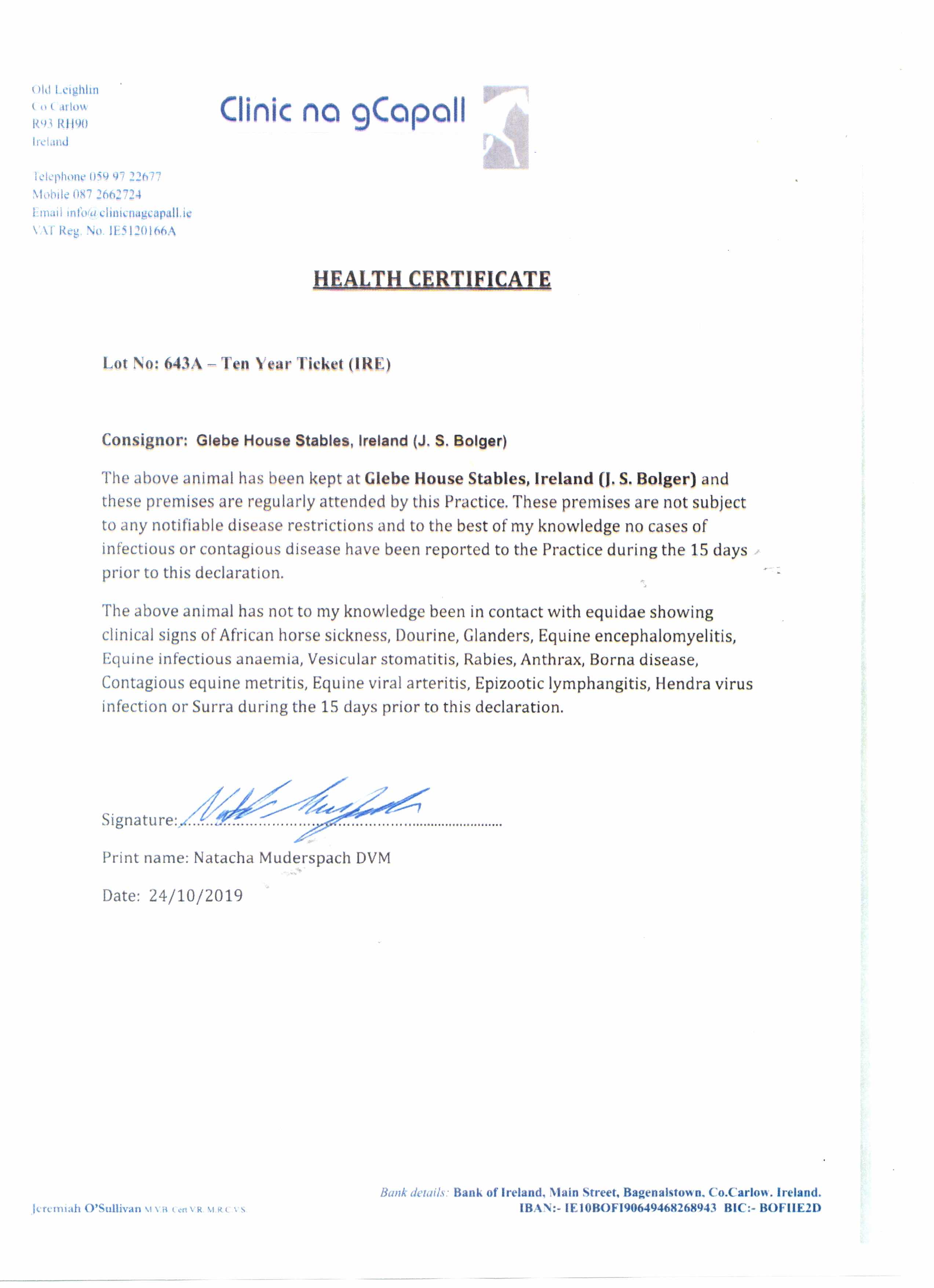 Consignor: Glebe House Stables, Ireland (J. S. Bolger)
