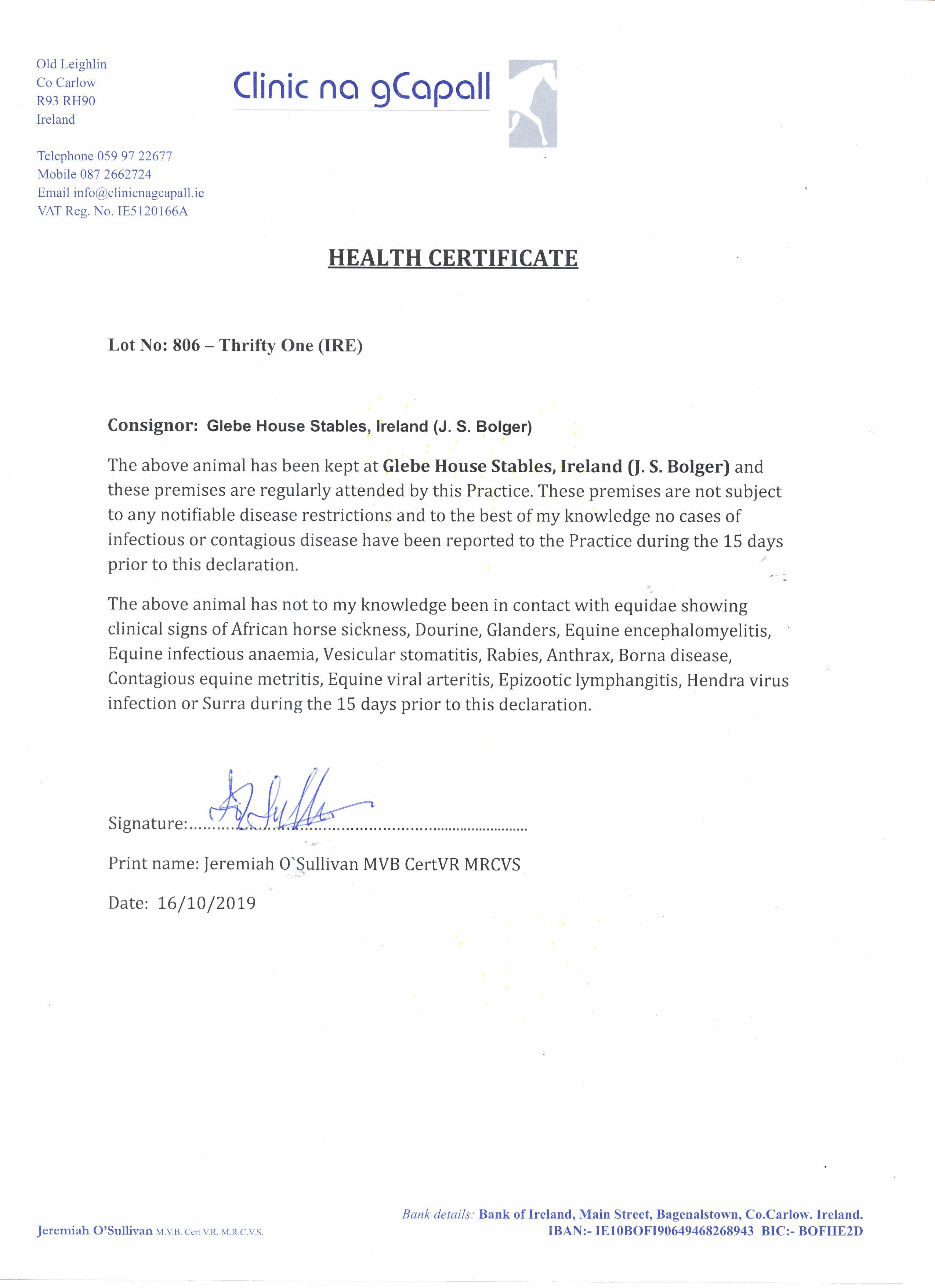 Consignor: Glebe House Stables, Ireland (J. S. Bolger)