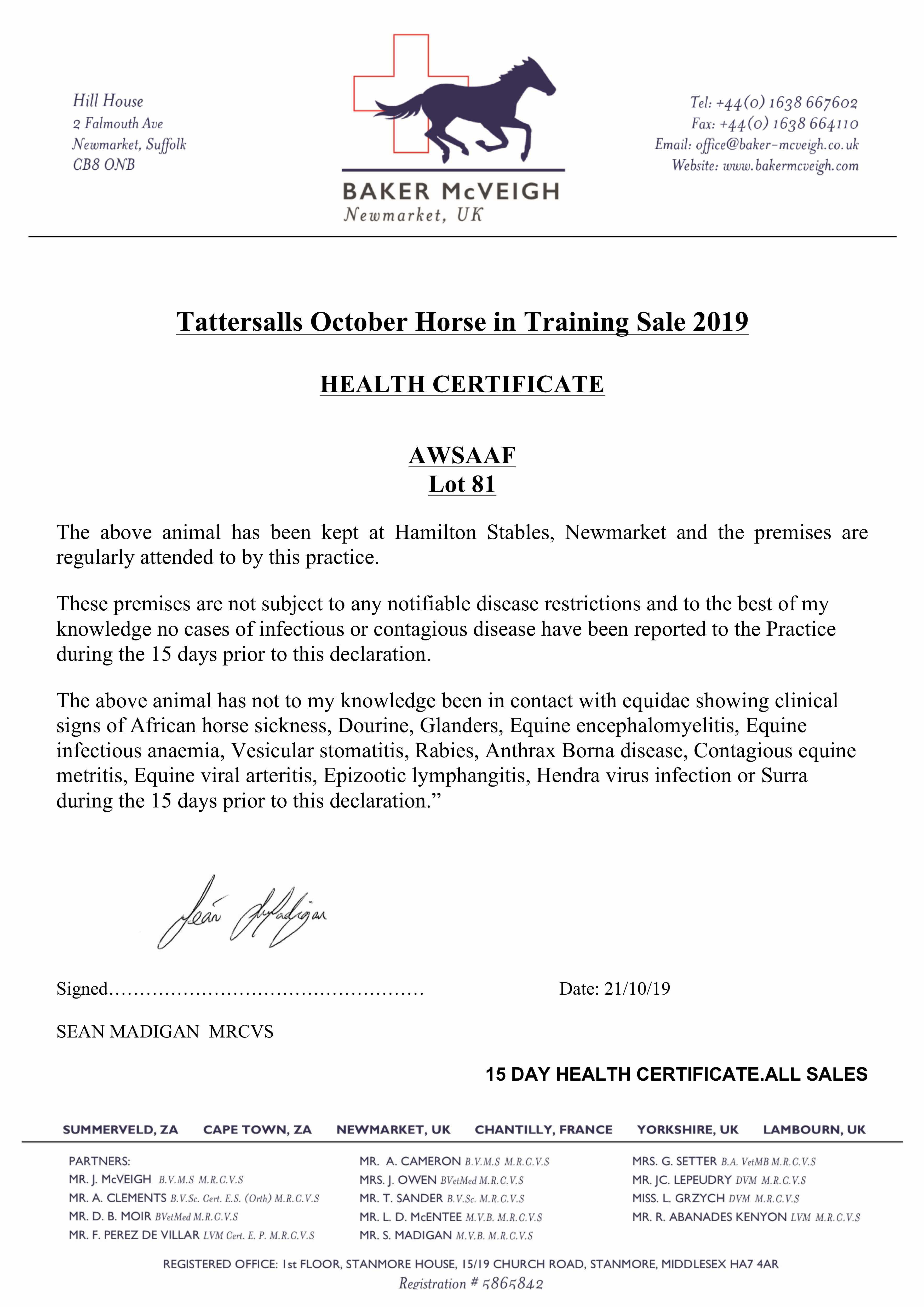 December Foal Sale 2018 lot 1182 F. by Charming Thought (GB) 2018, Lordship Stud=>Vendor 8,000 gns