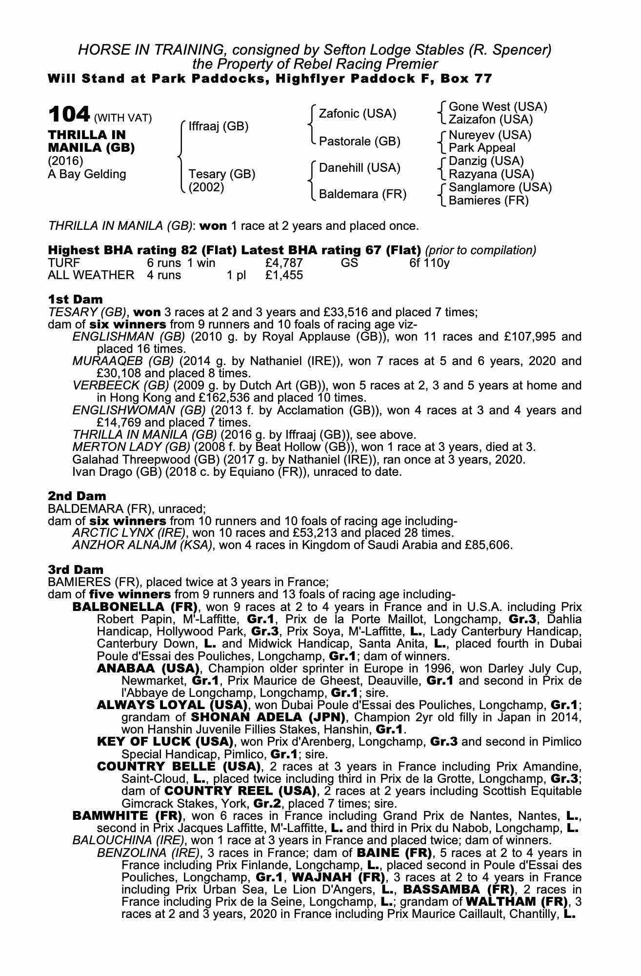 Consignor: Sefton Lodge Stables (R. Spencer)