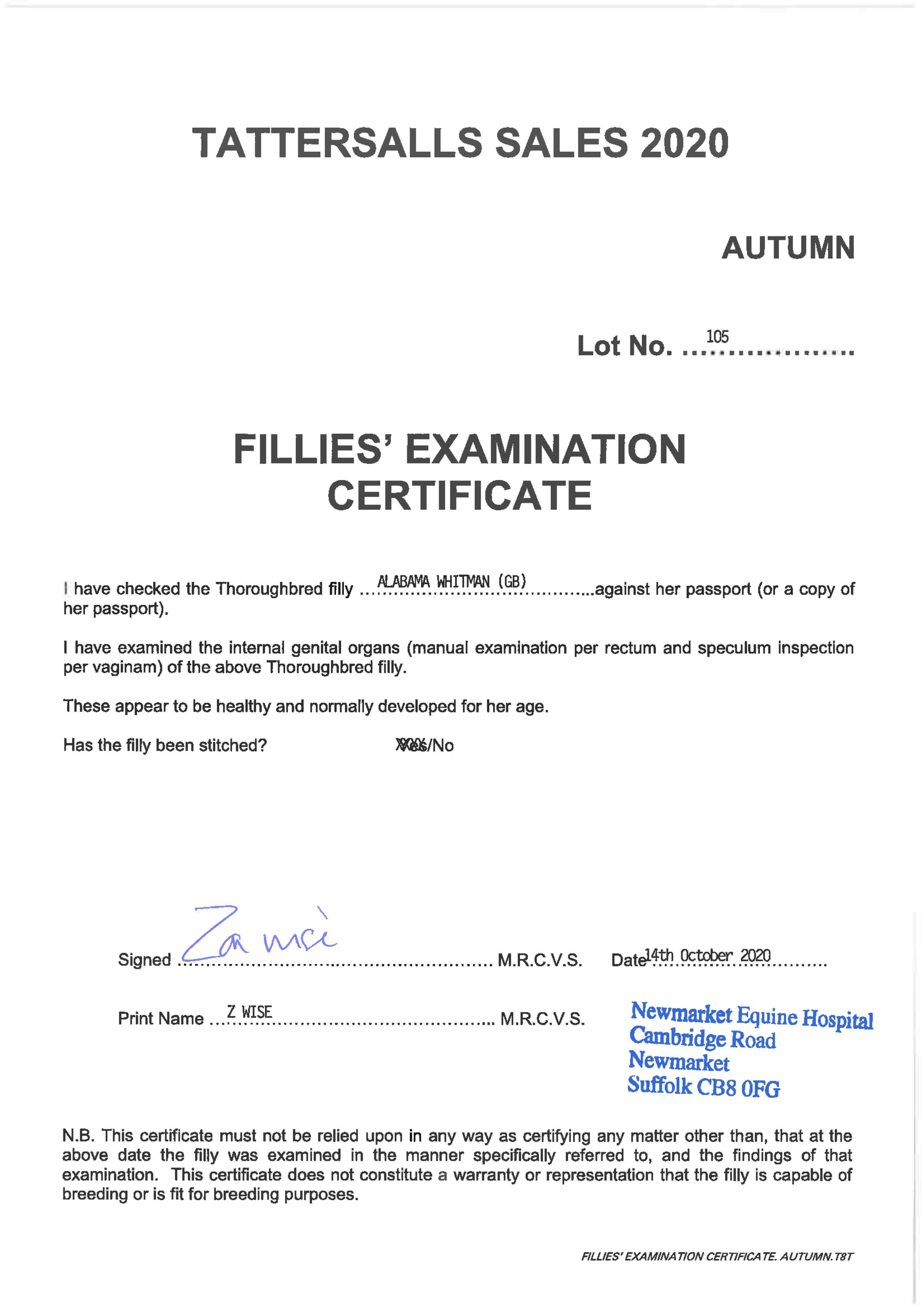 Consignor: Sefton Lodge Stables (R. Spencer)