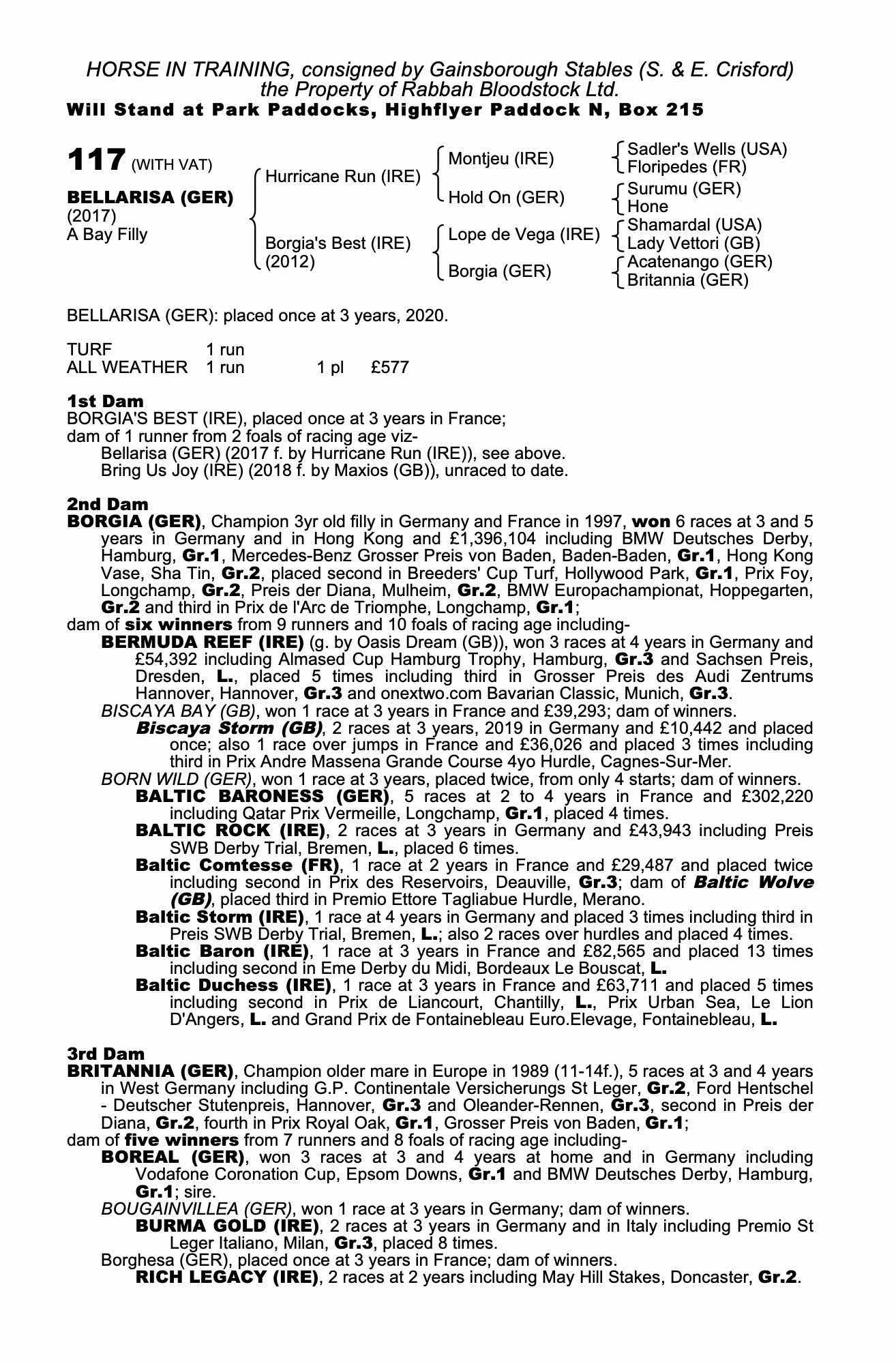 Consignor: Gainsborough Stables (S. & E. Crisford)