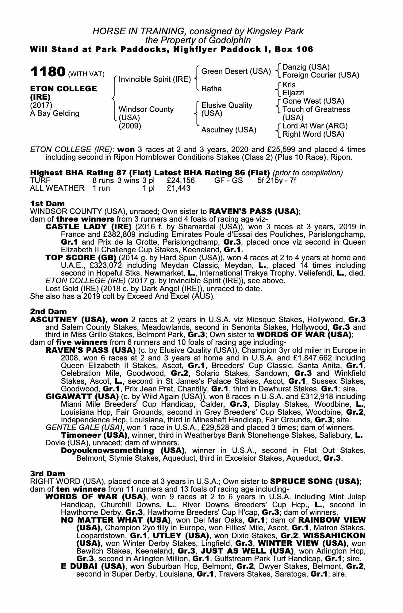 Autumn Horses In Training Sale 2021 lot 581, Kingsley Park=>Jamie Osborne 18,000 gns