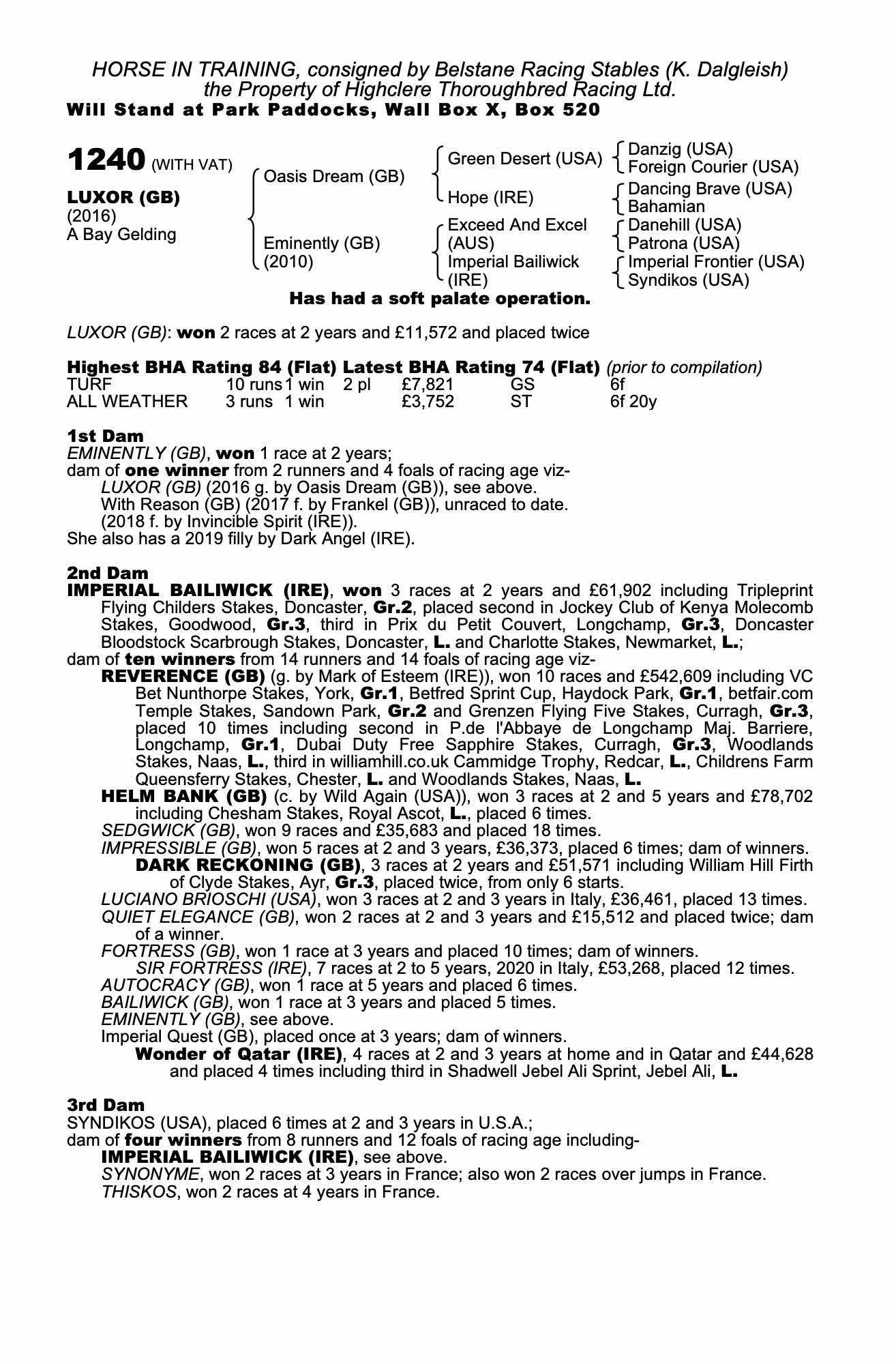 Online Sale - 6th June 2024 lot 116 Eminent Angel (GB) (M. by Dark Angel (IRE)), Ms Melissa Sproul=>Lot Not Sold 1,500 gns