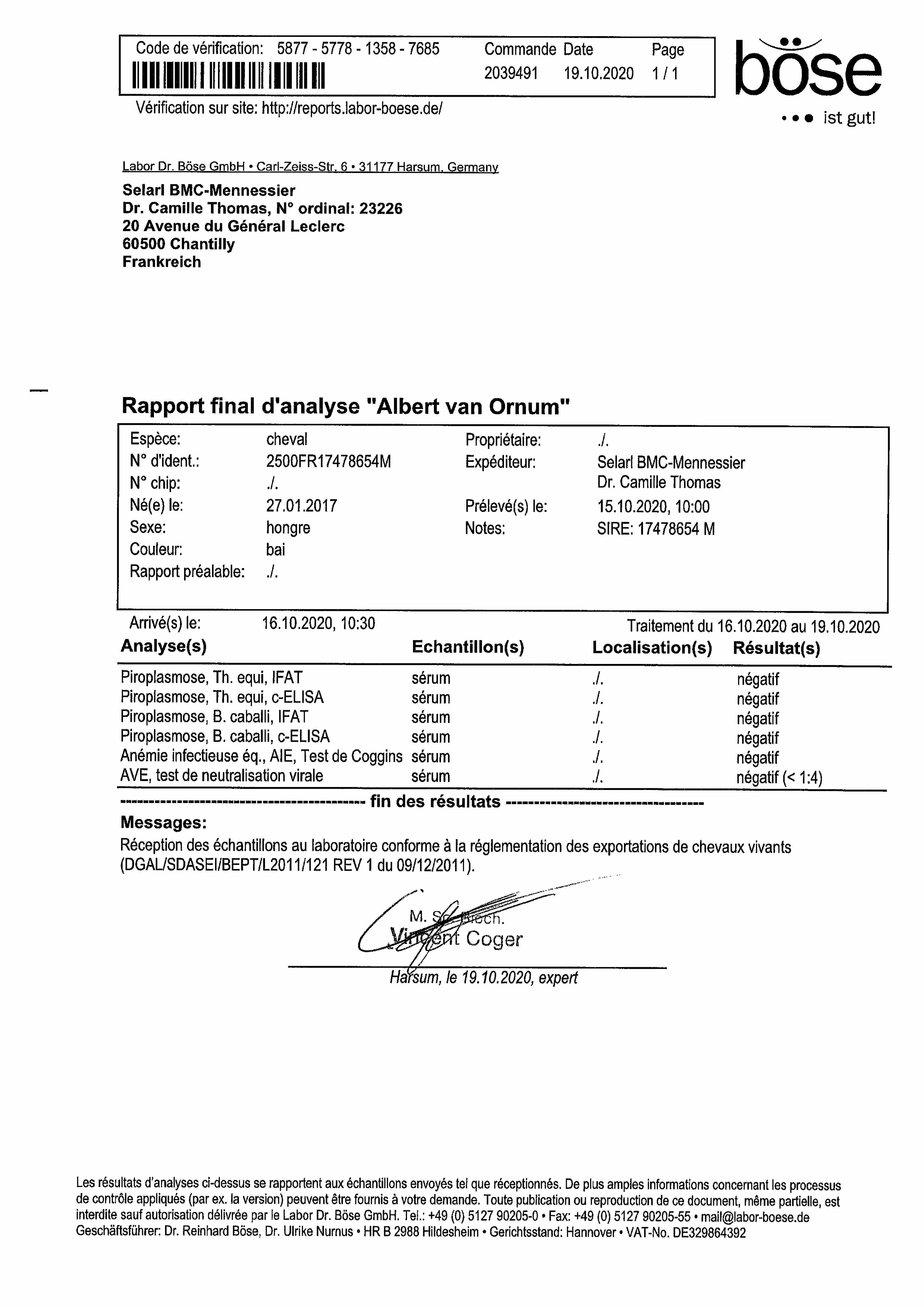 Piroplasmosis Certificate