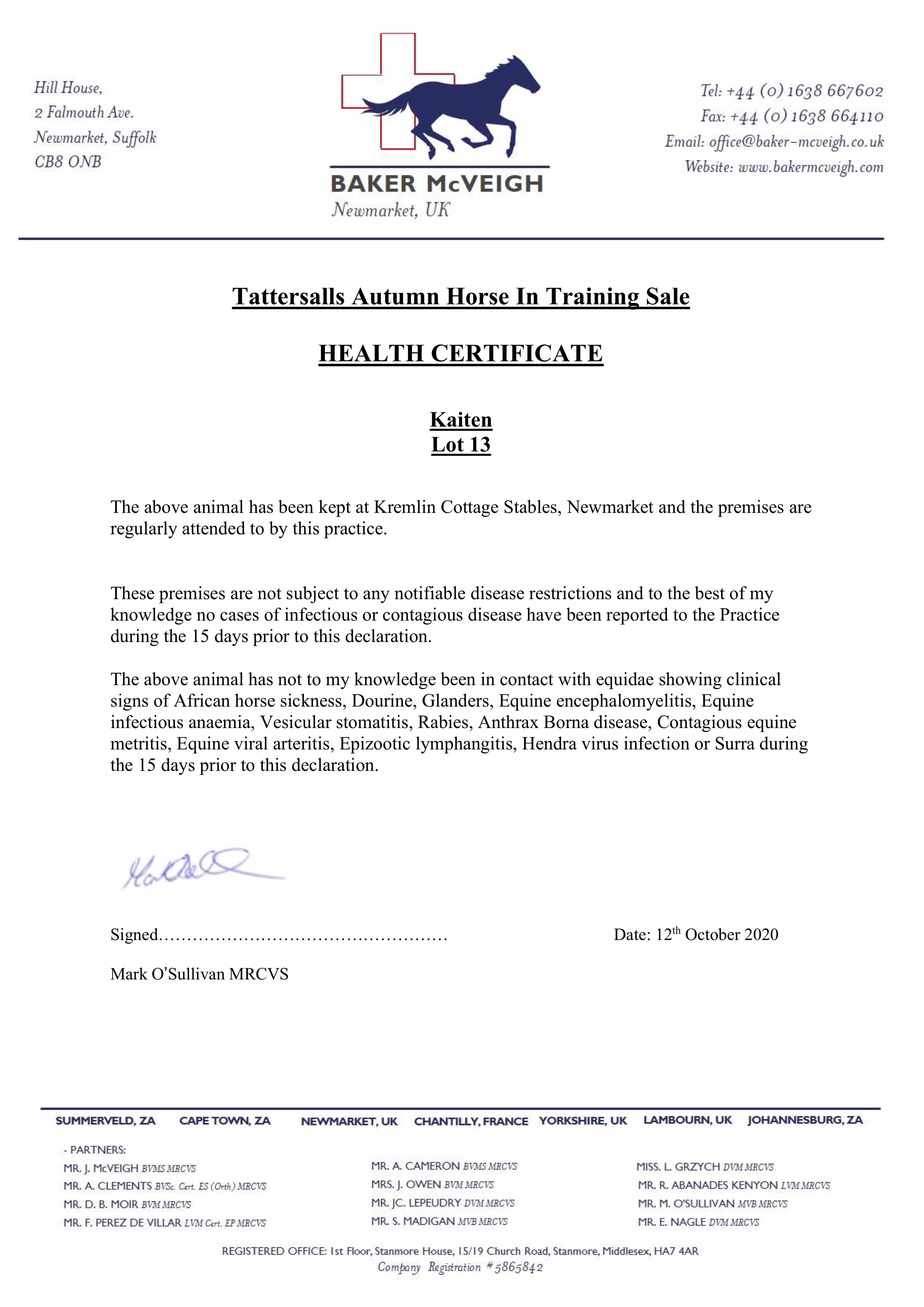 Consignor: Jamie Railton (Agent)