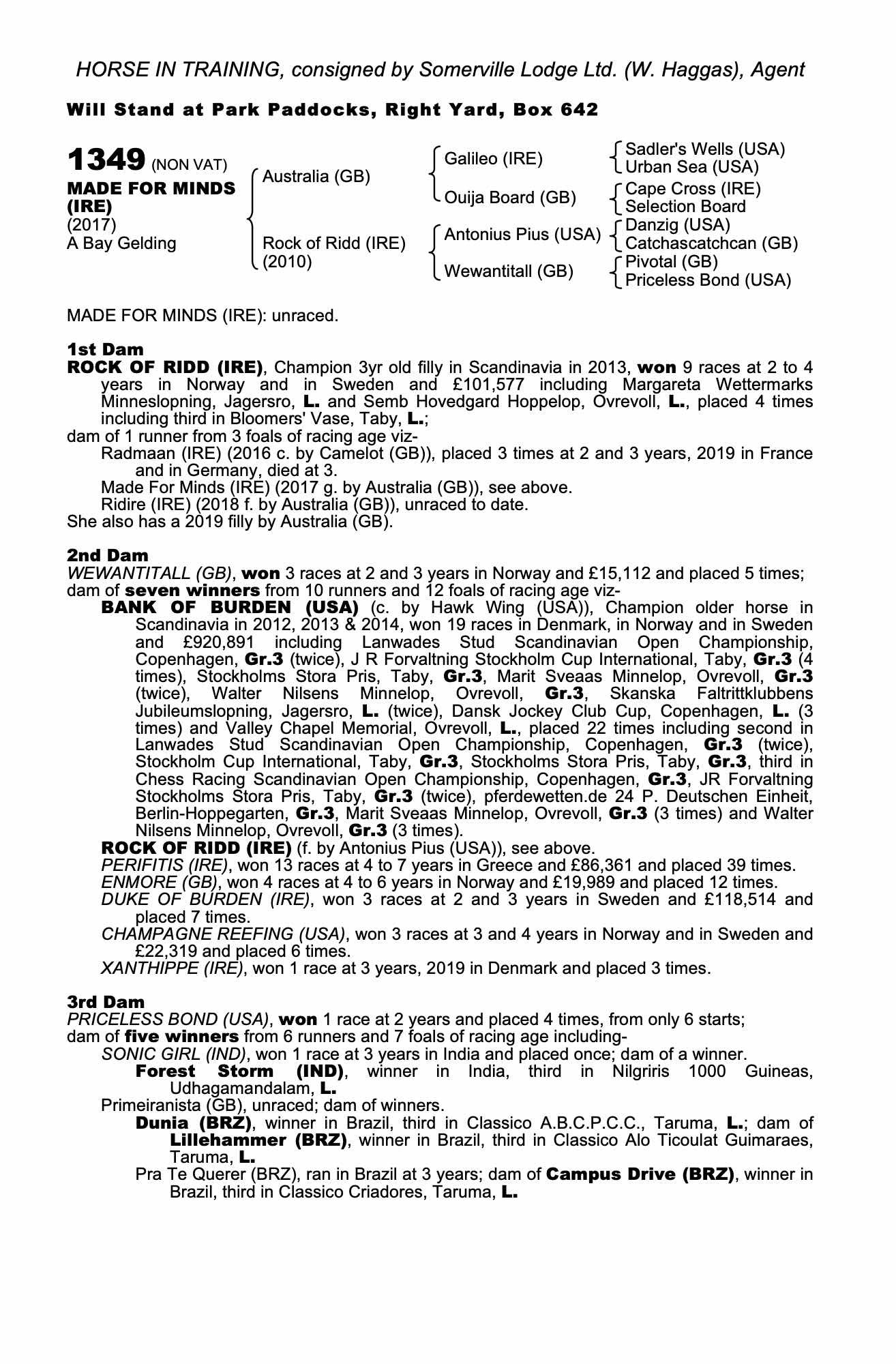 Consignor: Somerville Lodge Ltd. (W. Haggas), Agent
