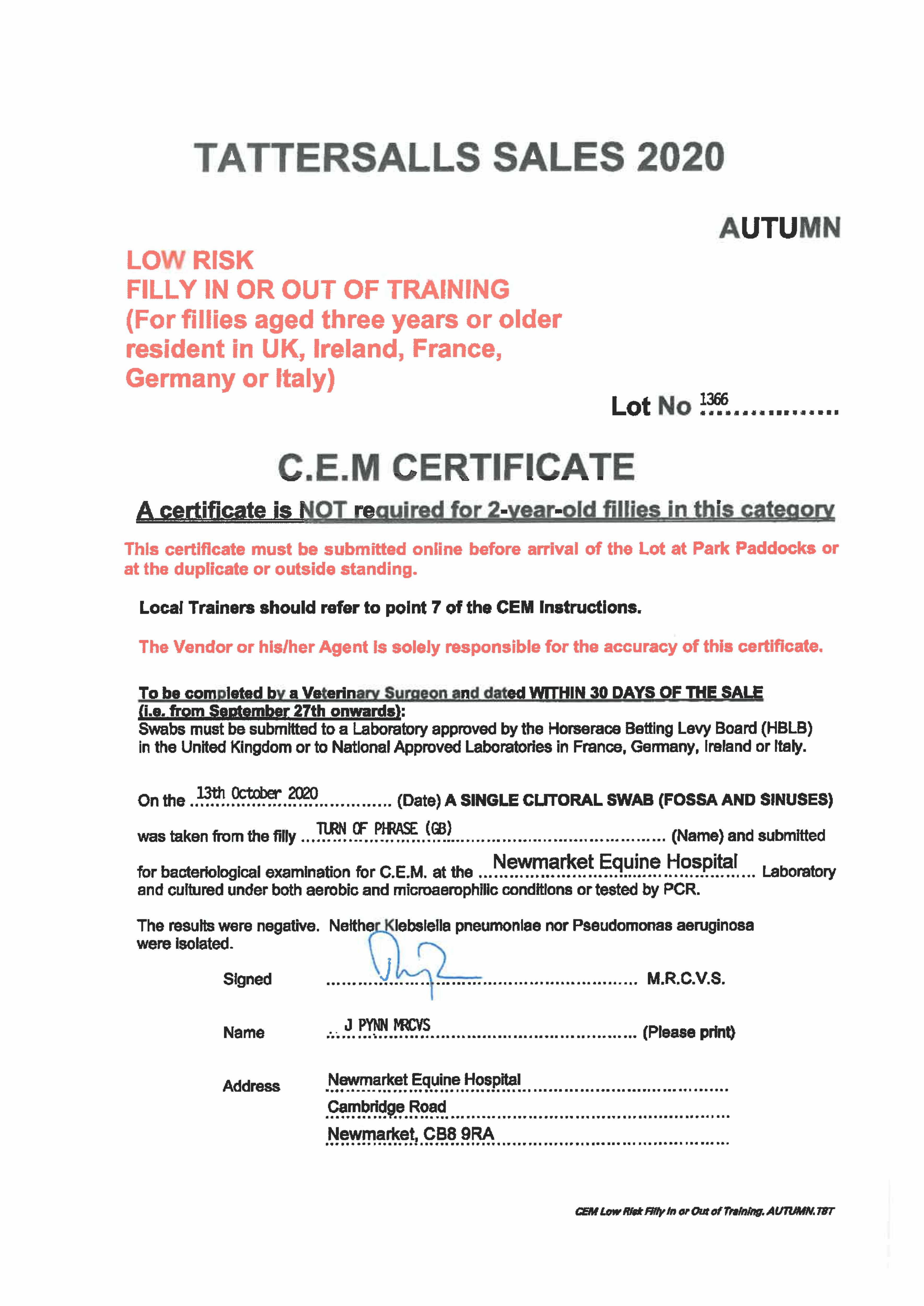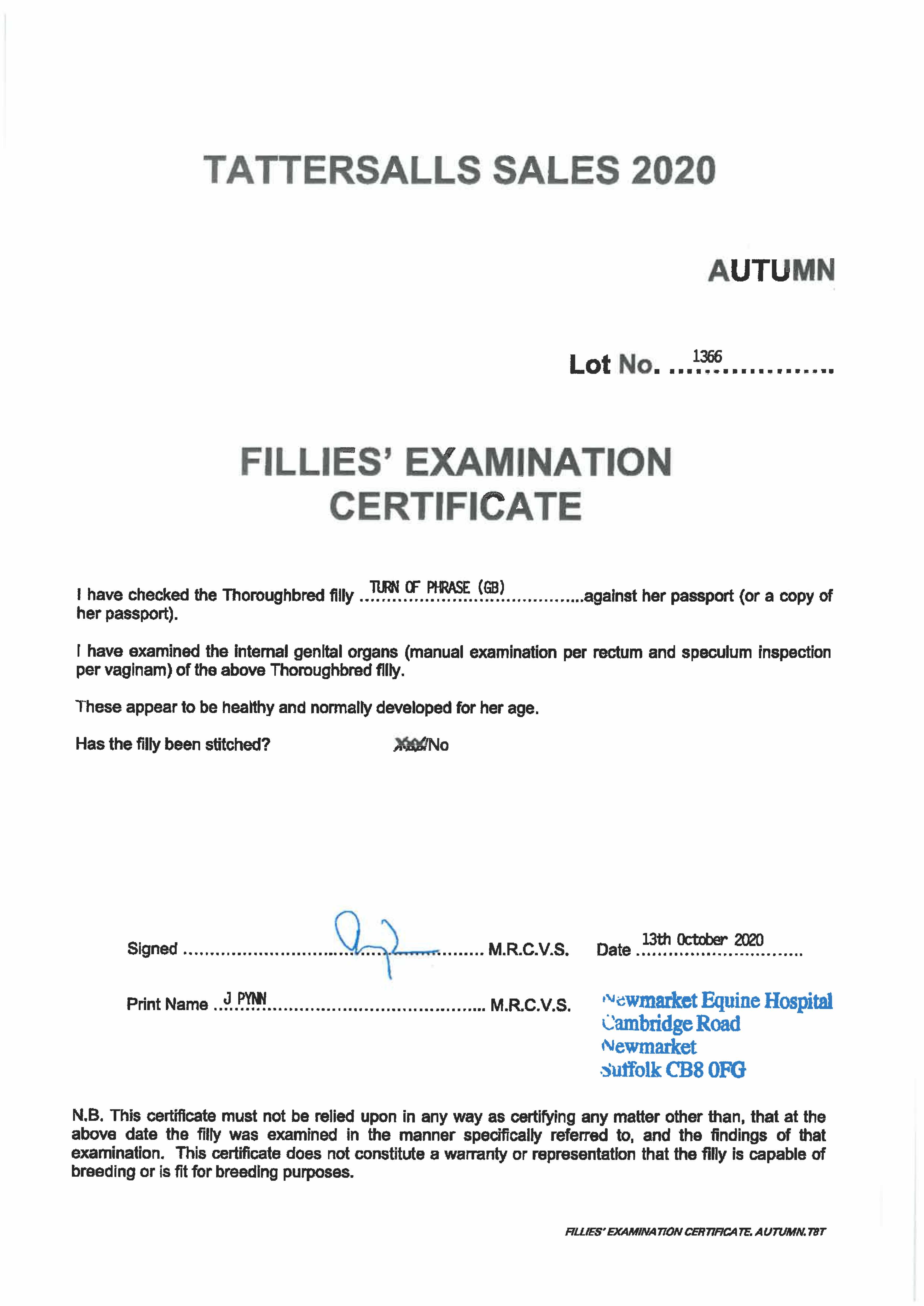 December Foal Sale 2019 lot 340 F. by Bobby's Kitten (USA) 2019, Voute Sales Ltd. (Agent)=>Lot Not Sold