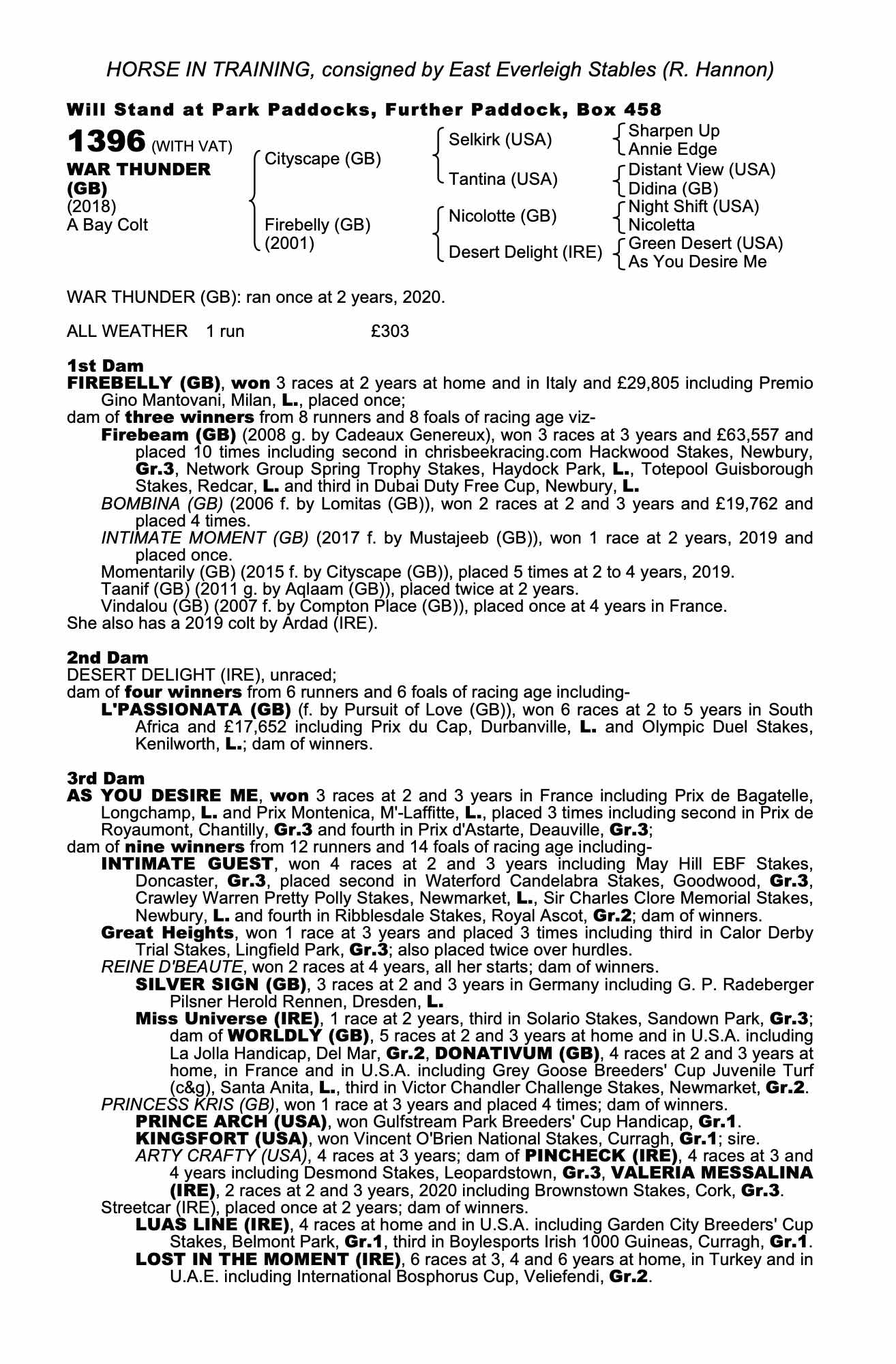 Consignor: East Everleigh Stables (R. Hannon)