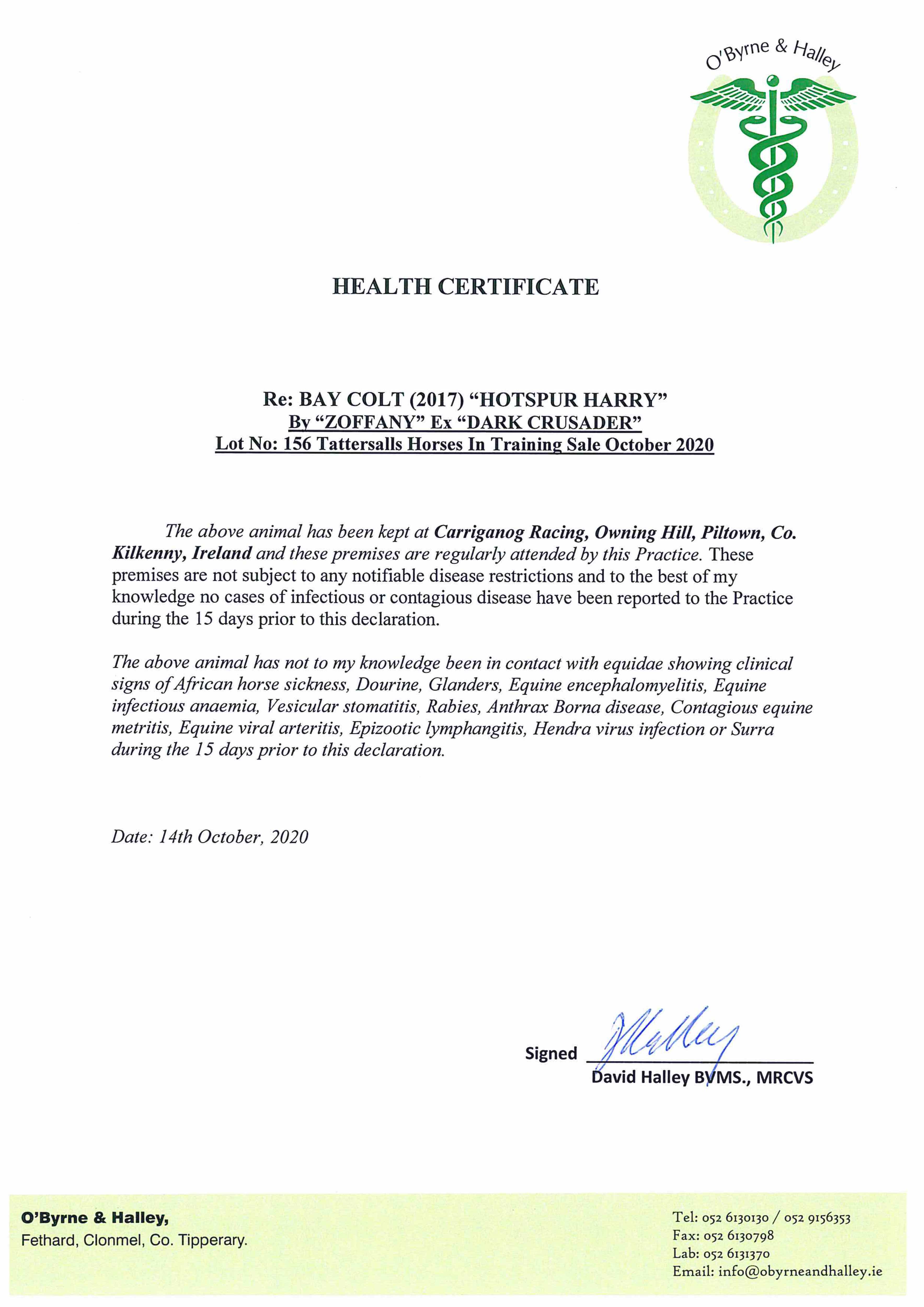 Consignor: Carriganog Racing, Ireland (J. P. O'Brien)